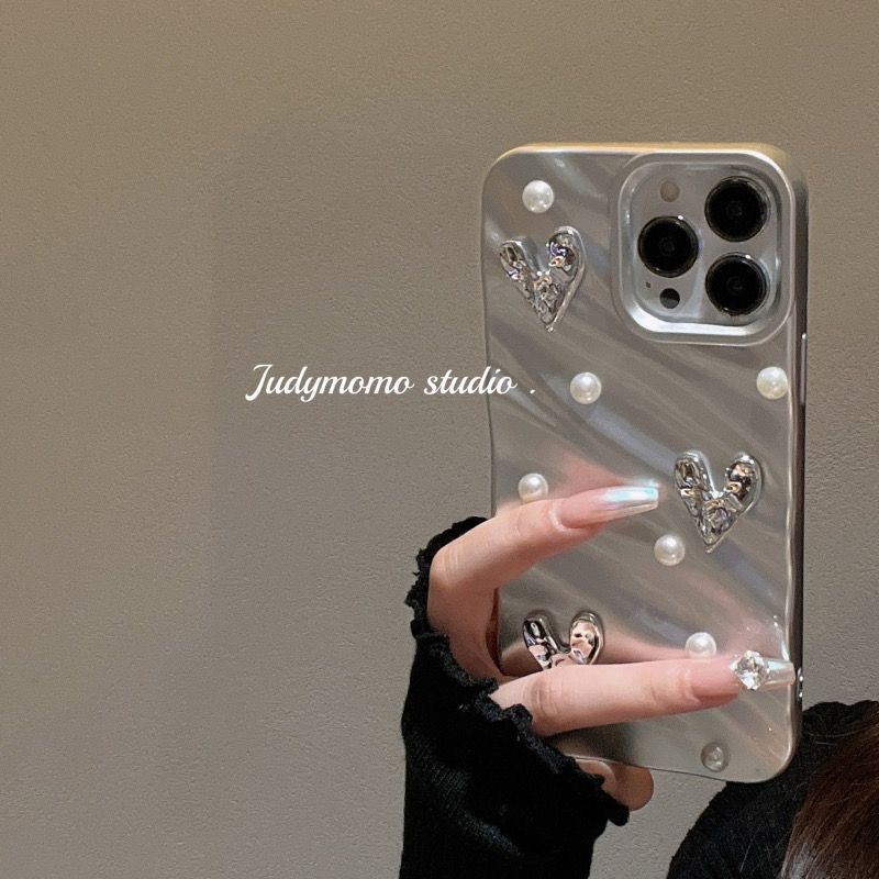 2025 スマホケース シルバーパールハート phone15ケース アップル 13promax スマホカバー 16/16ソフトケース 保護 カバー