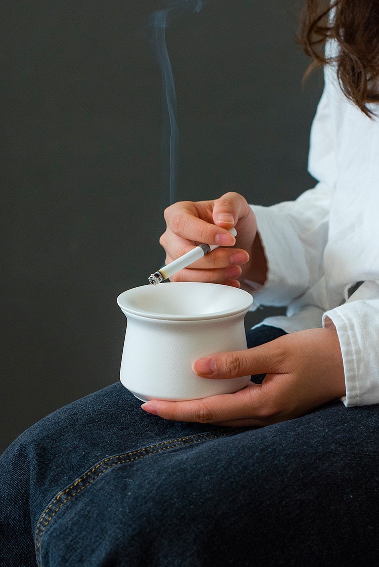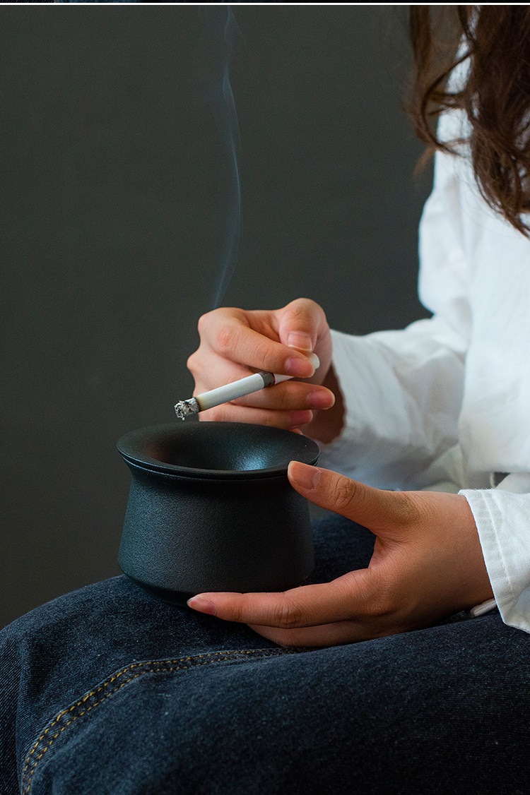 激安セール リビングに映えるデザイン灰皿 陶製で重厚感あり 4カラー対応 風で消えにくい構造 幅9.3×高6.8cm 家庭用ホルダー