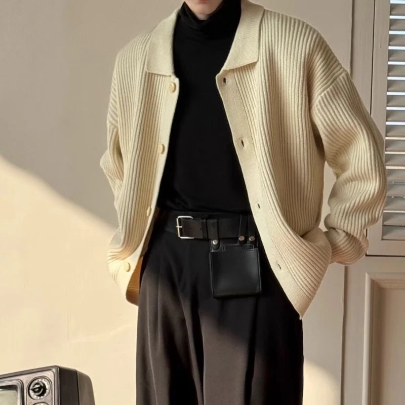 LA PELLE2026新作 セーター メンズ ラペル 長袖 ニット カーディガン セーター メンズ 秋冬 新作 レトロ 柔らかい 快適 カジュアル のんびりスタイル トップス メンズ アウター