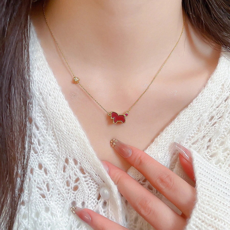 ポニー2026 馬 ネックレス 電着ゴールド メタル ポニー ネックレス ライトラグジュアリー ニッチ 鎖骨チェーン 旧正月 気質 ネックレス レディース 福袋