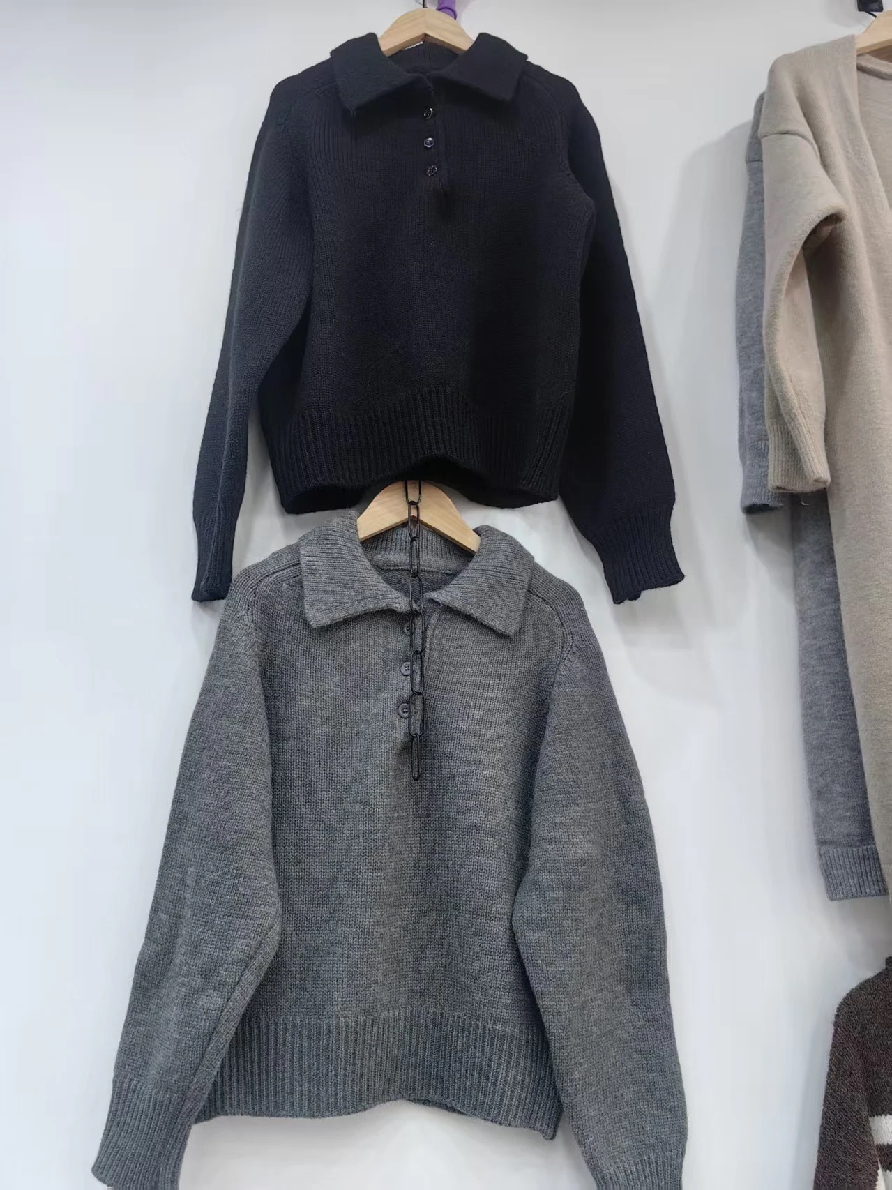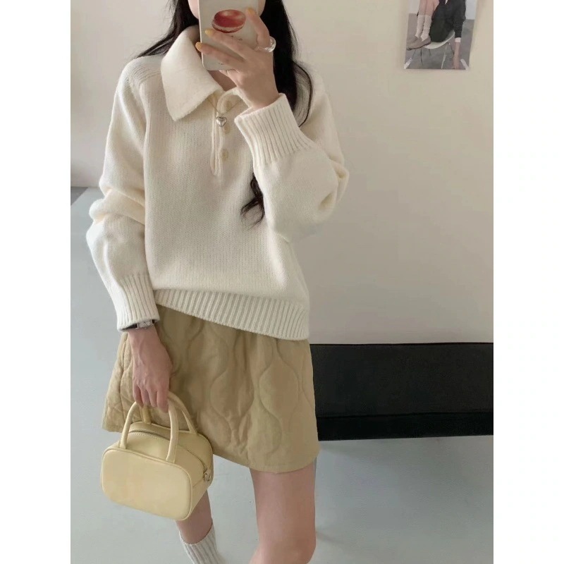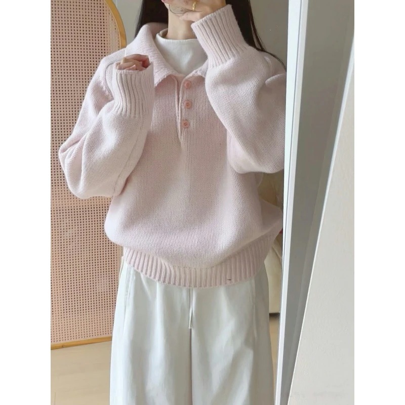 風乳甘系ふんわりポロリ襟セーター女2026秋冬ゆるっと上品ニット
