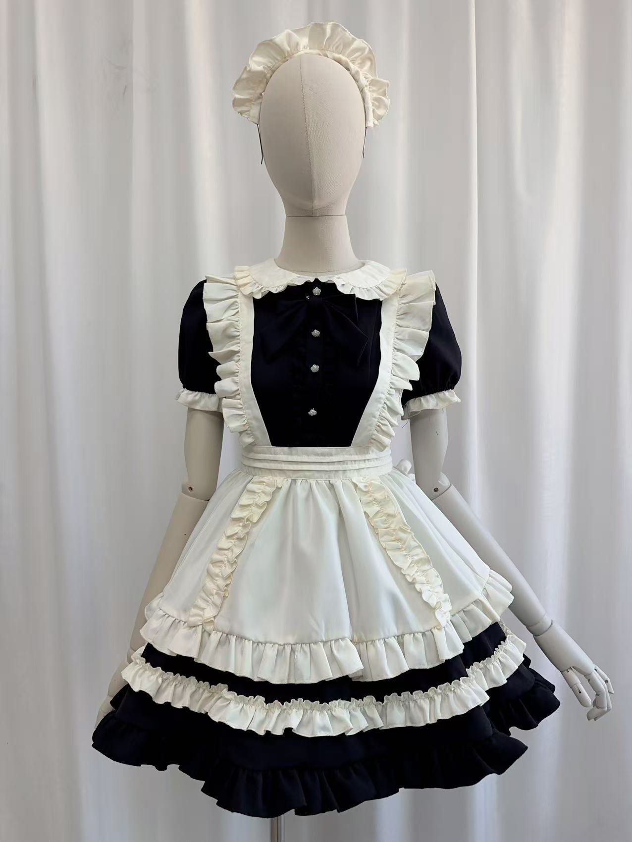 10個セット ロリータメイドの甘い半袖ワンピースレトロなバブルスリーブのメイドスーツ