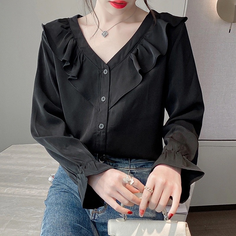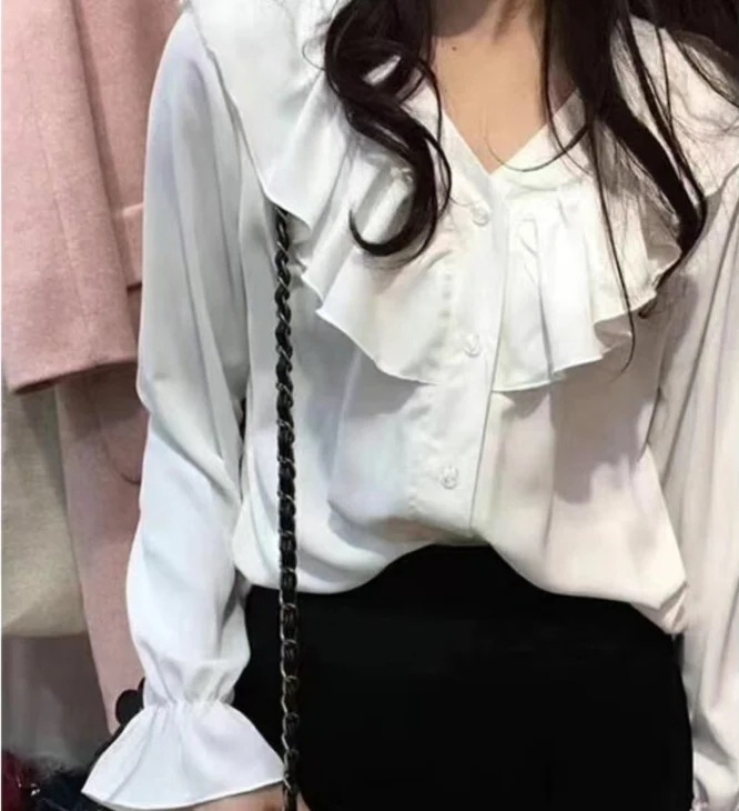 長袖シャツエッジシャツ女性用 2025年春秋フリルが超仙女風トップスおしゃれシフォンブラウス