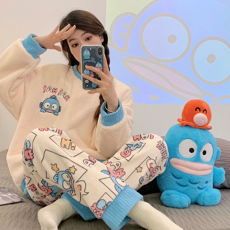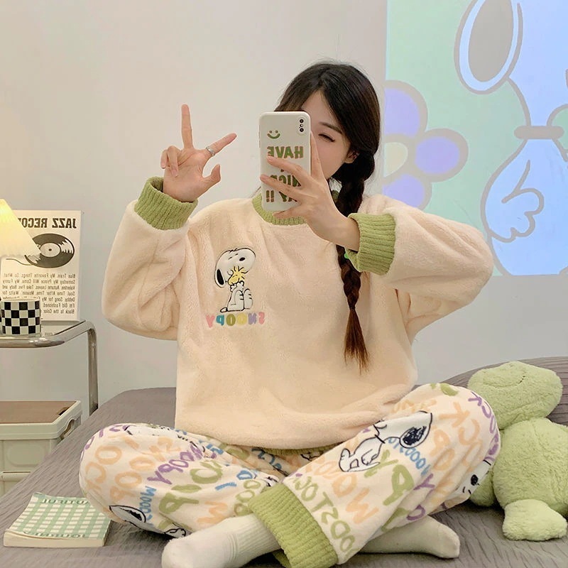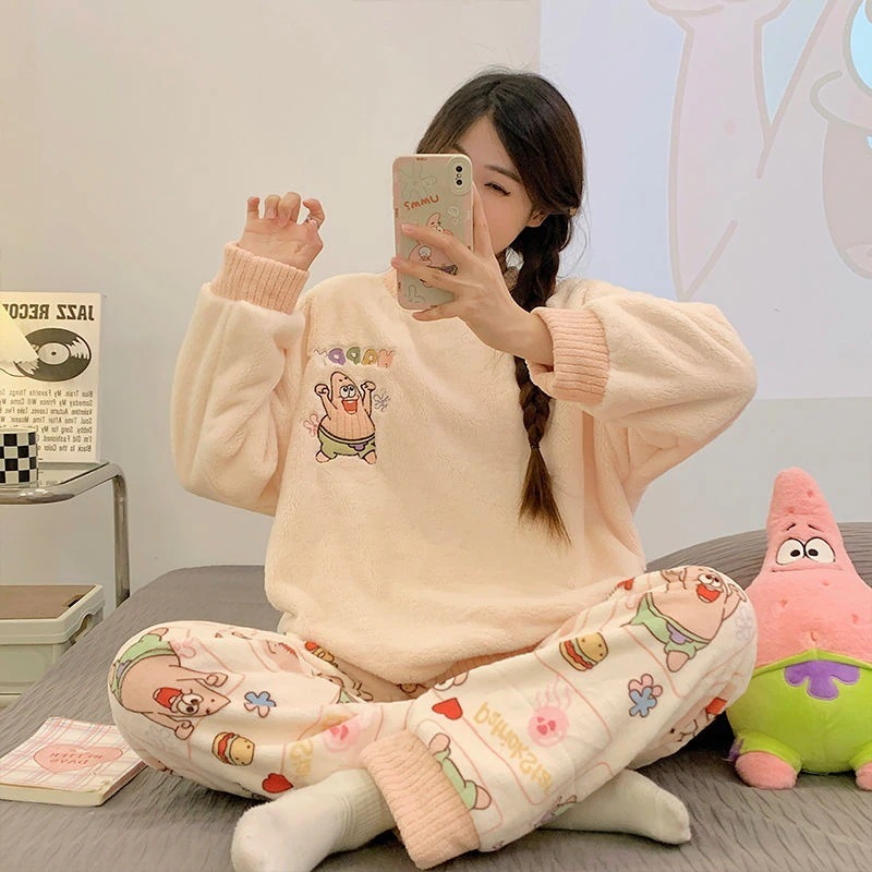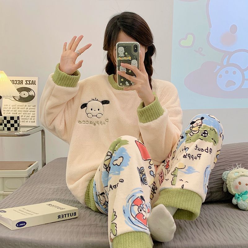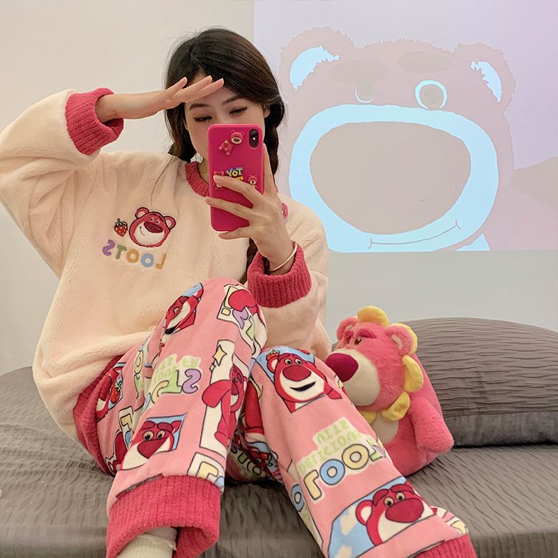 【大規模セール特典】サンゴのパジャマ女性秋冬にベルベットを厚くしたフランネルネット紅風家庭服クレヨンしんちゃん漫画セット パジャマ上下セット