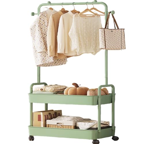 【タイムセール】ハンガーラック 洋服ハンガートロリー 2段バスケット付き洋服ハンガー 多機能収納 キャスター付き 強力な耐荷重 カーボンスチール 容量 組み立て簡単 省スペー