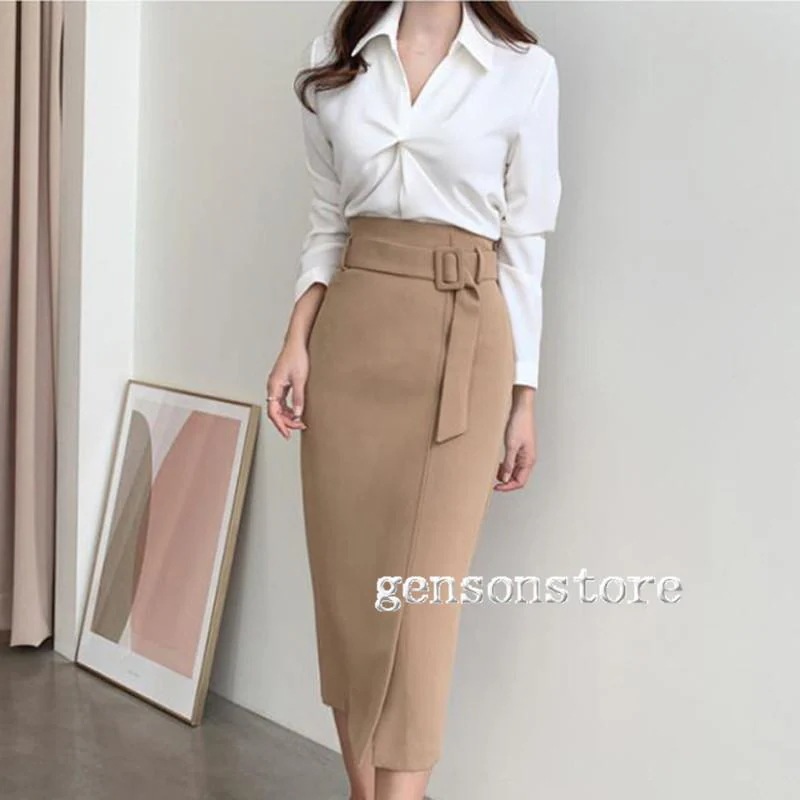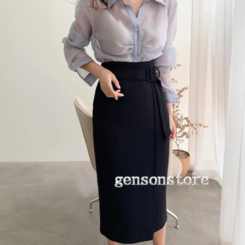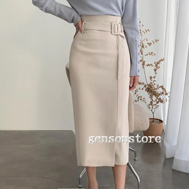 【タイムセール】簡単にスタイルアップ 春夏 スカート ハイウエスト ベルト付き タイトスカート レディース 韓国 ロング ミモレ丈 無地 ゴム ファスナー きれいめ 上品ペンシル