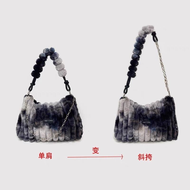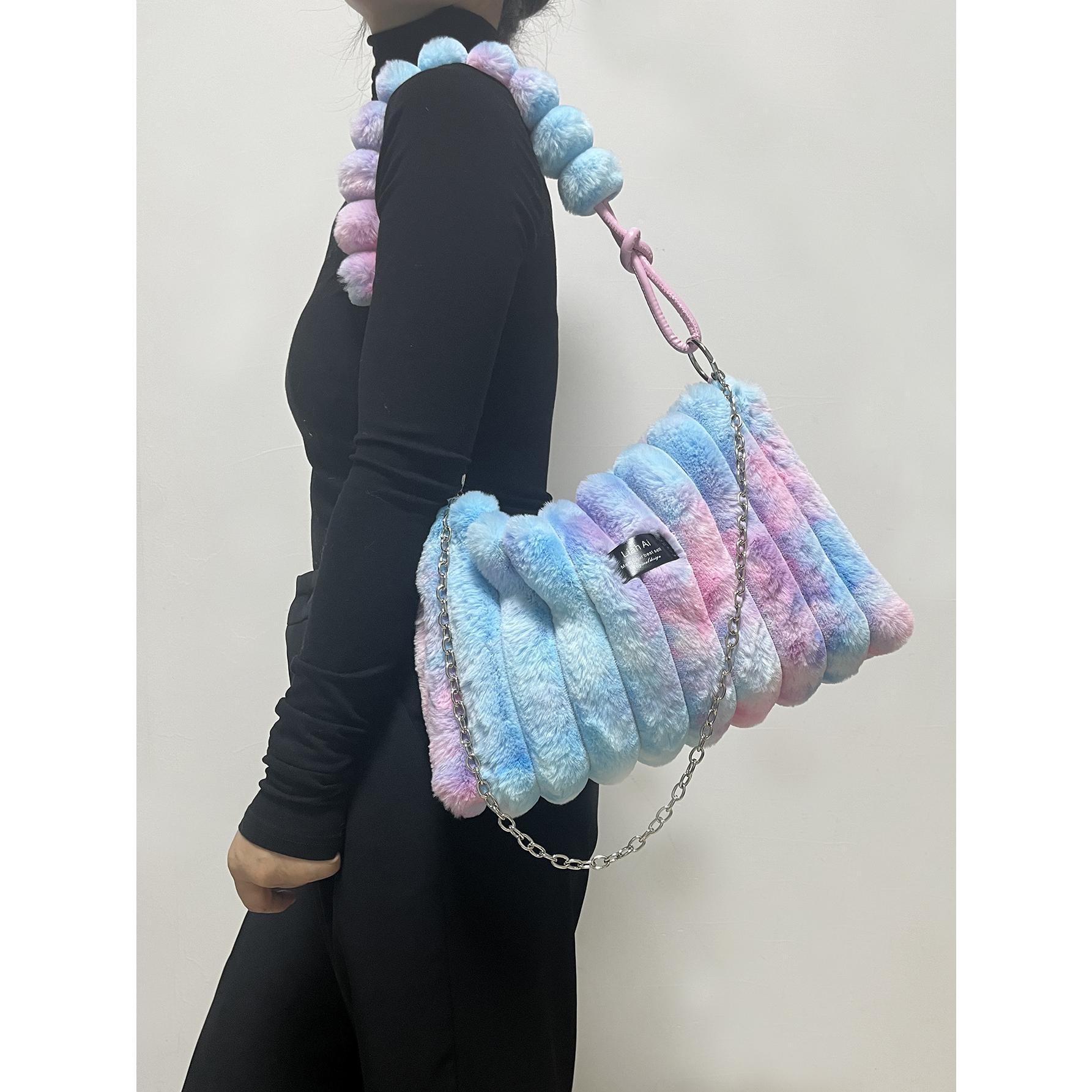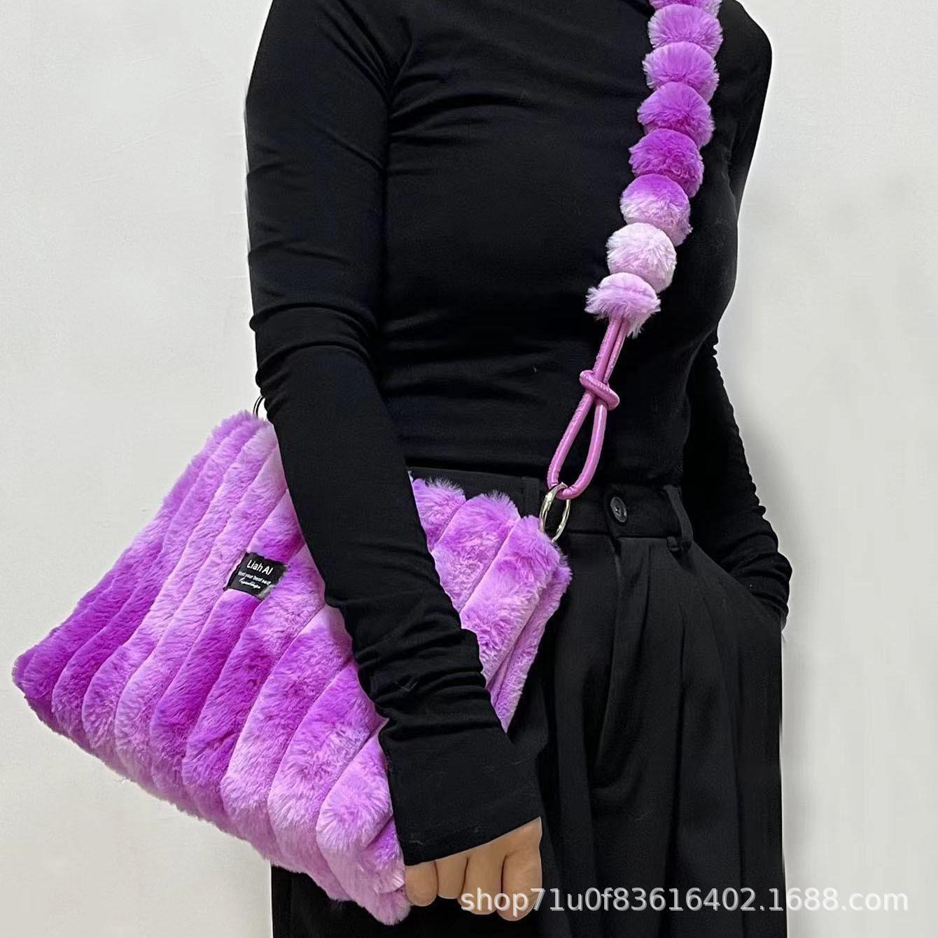 秋冬の新しい絞り染めぬいぐるみハンドヘルド毛皮のクロスボディコスプレショルダーバッグ女性のための女性のギフト大容量
