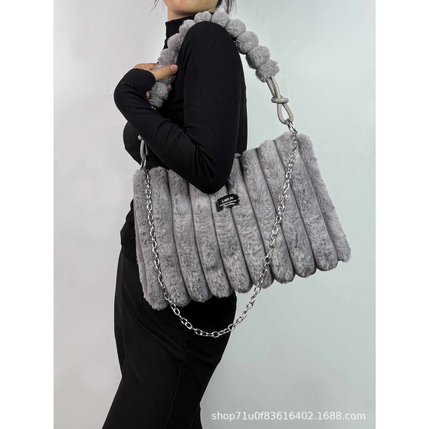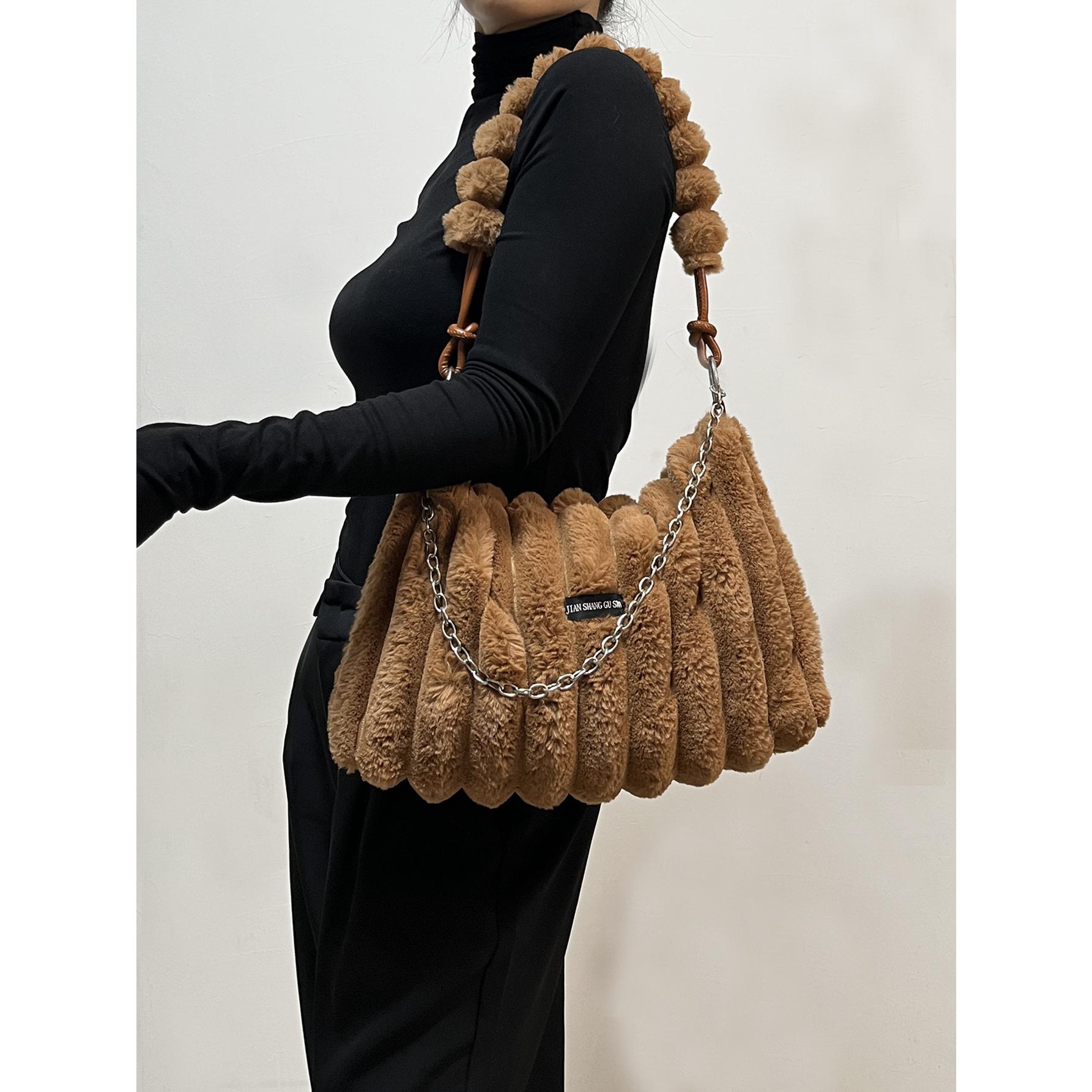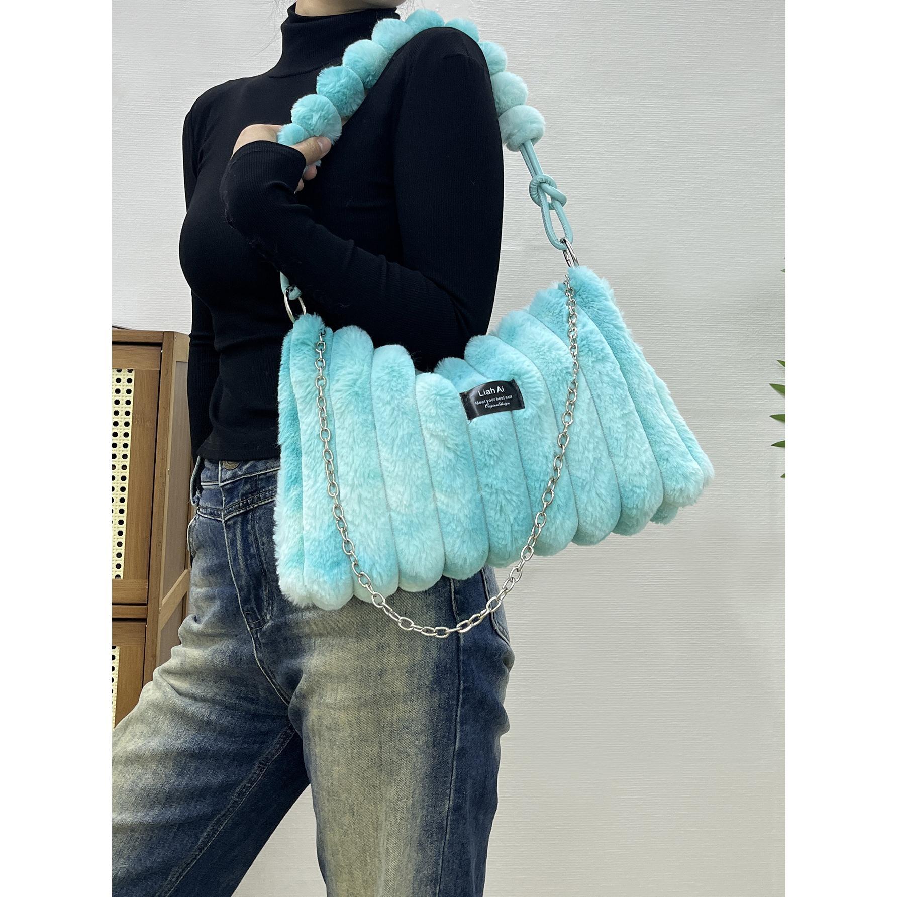 秋冬の新しい絞り染めぬいぐるみハンドヘルド毛皮のクロスボディコスプレショルダーバッグ女性のための女性のギフト大容量