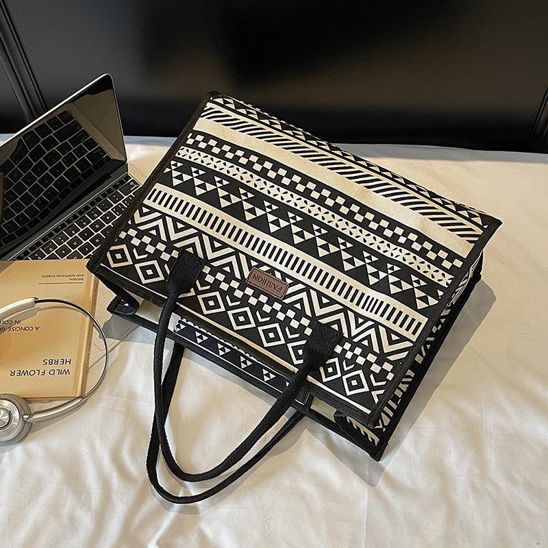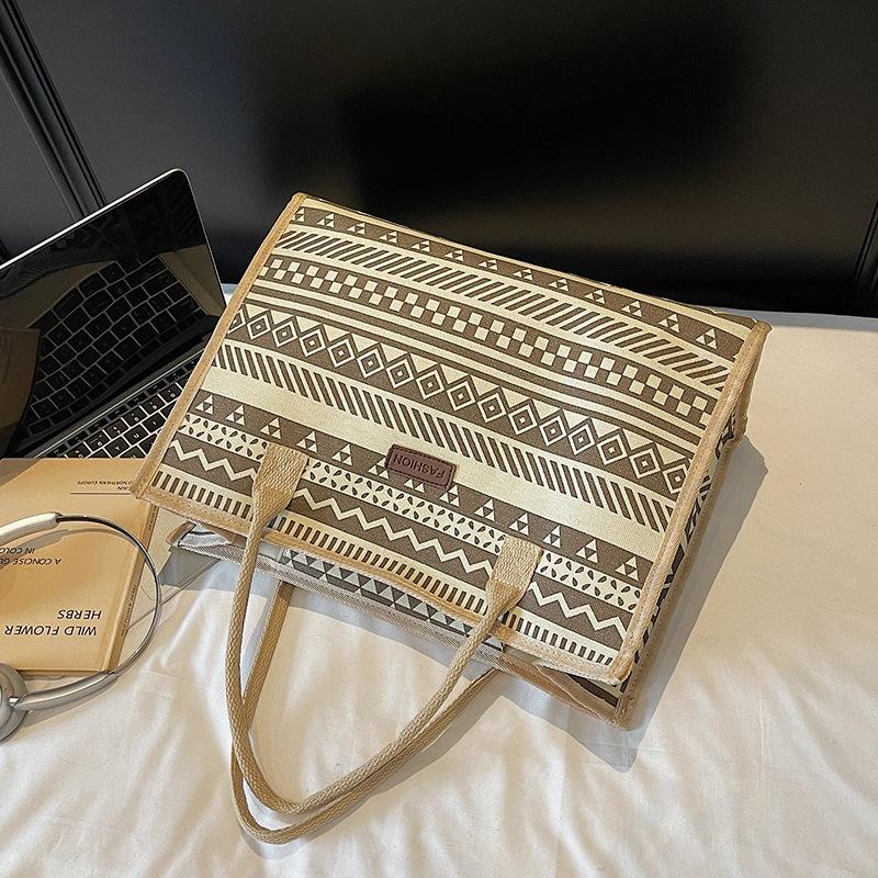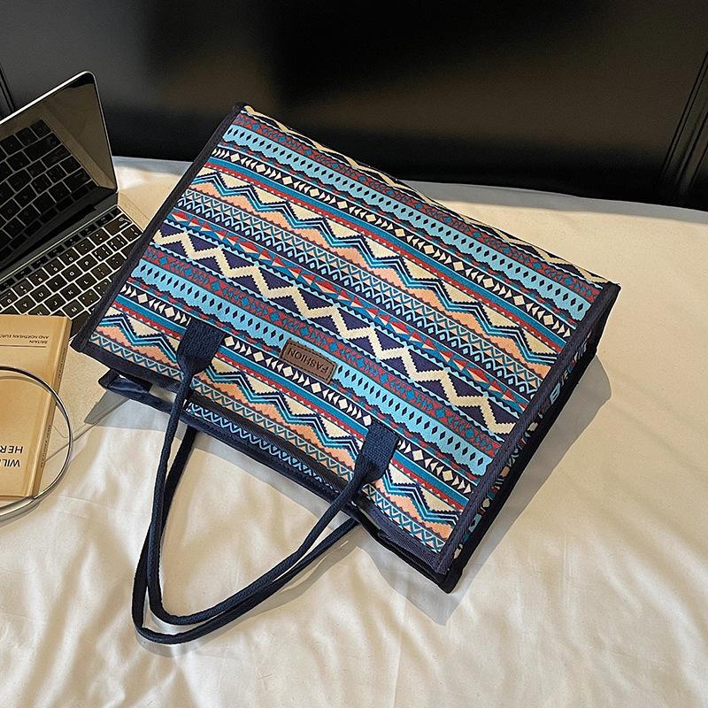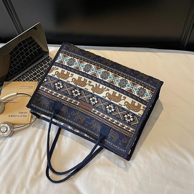 ヴィンテージエスニックスタイルの大容量キャンバストートファッショナブルなシンプルなママのための仕事ハンドヘルドショルダーバッグ