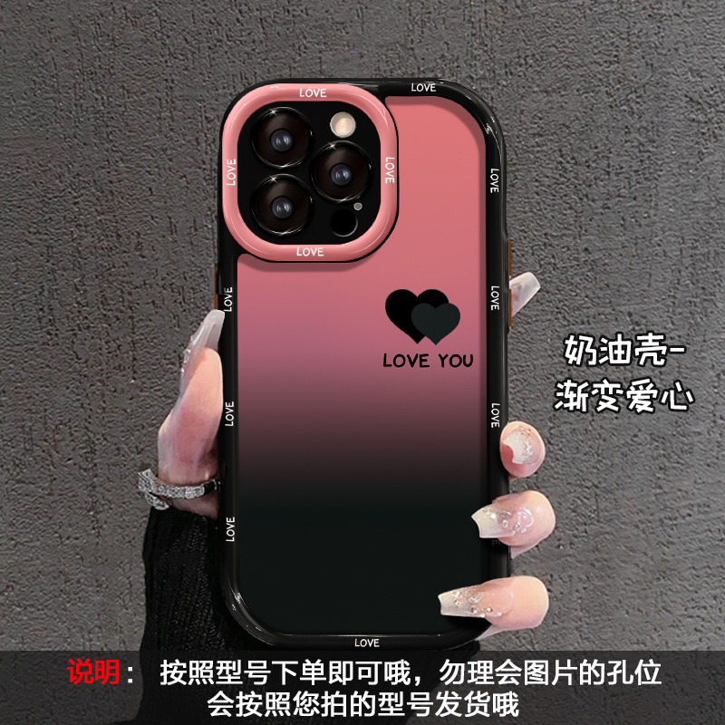 グラデーションハートデザイン アップルiPhone16 Proケース対応 14mm精密穴加工 全面保護 耐衝撃 13mm高級感 iPhone 17 Pro Max