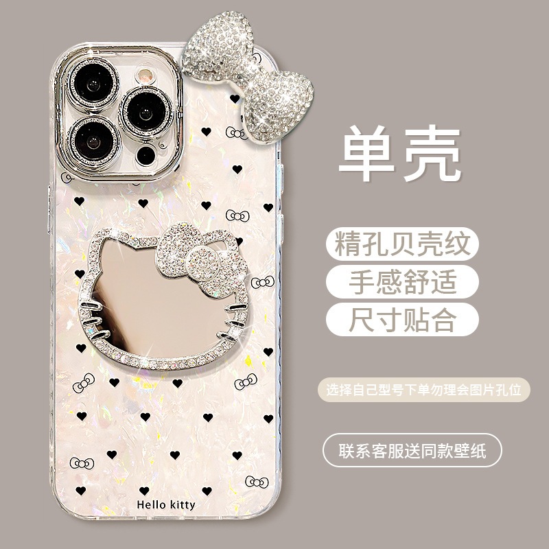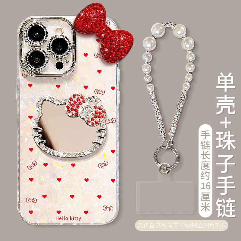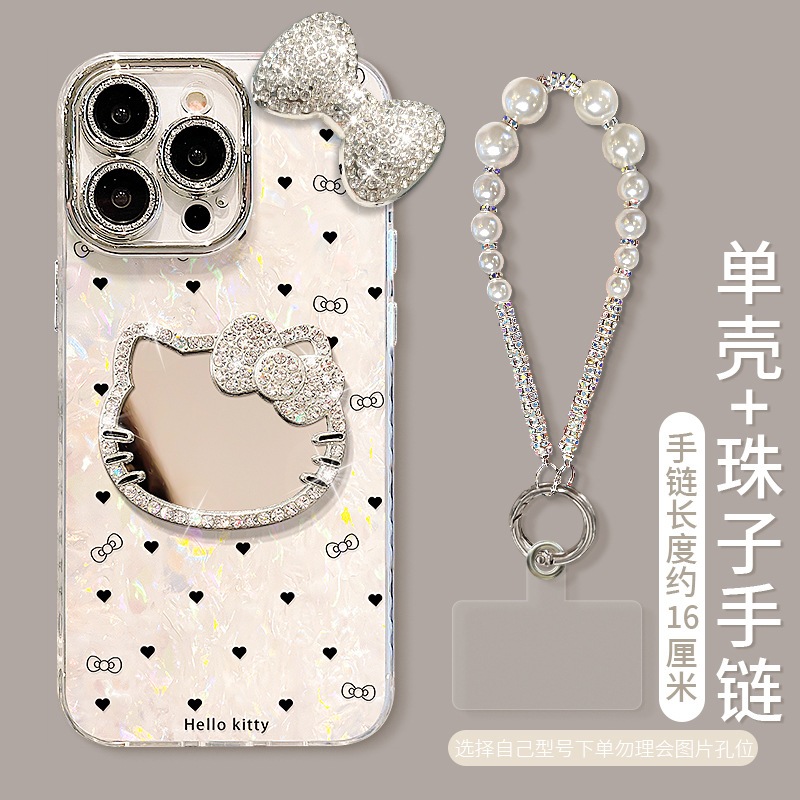 猫ミラーブレスレット アップル16proケース対応 13 ラインストーンリボン 15 高級感 14 女性向け iPhone 17 Pro Max