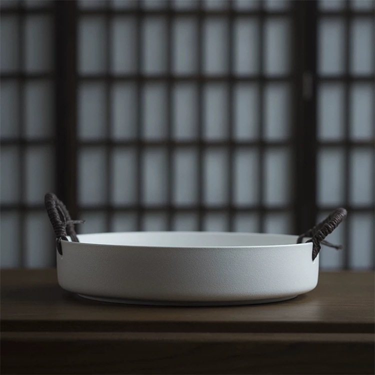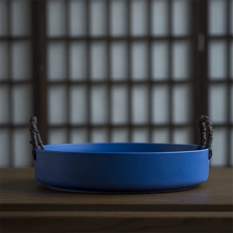 早い者勝ち 家庭用田園テイストの陶器果物ボウル 手作り収納カゴ 4つのシンプルカラーから選べ ハンドル付きデザインでパンやお菓子フルーツの保管に適した
