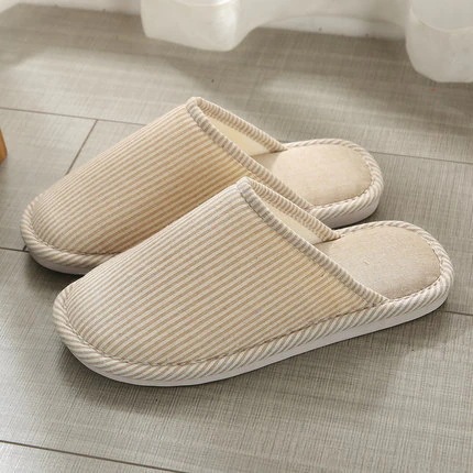 カップル用 綿スリッパ 女性用 春・秋用 和風 リネン素材 室内用 柔らかい底 滑りにくい