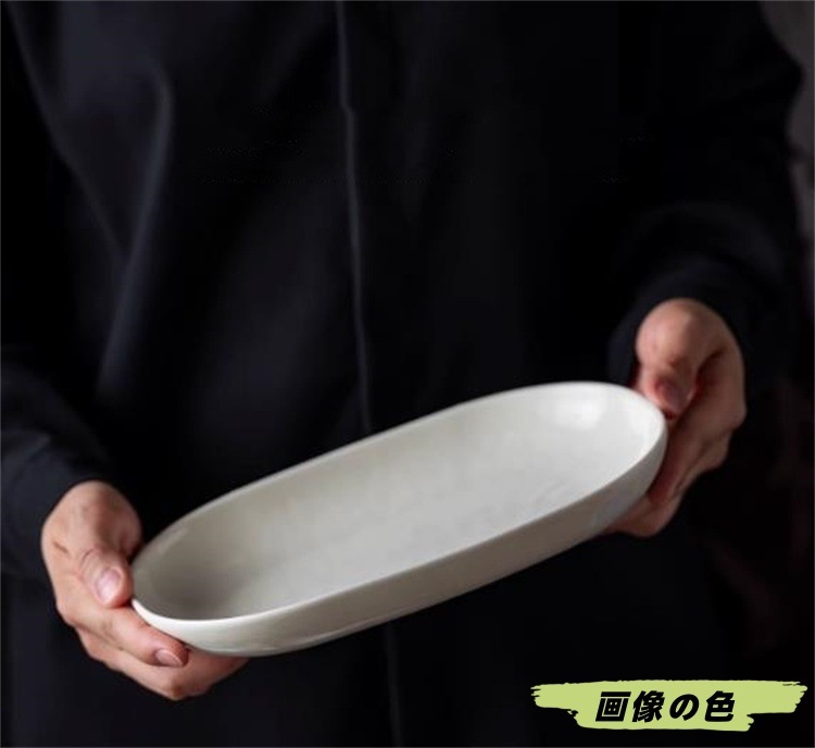INSスタイル 楕円形陶器プレート 2色対応 23.8cm長径で主菜・前菜・魚料理まで対応 台所になじむナチュラルデザインの実用食器