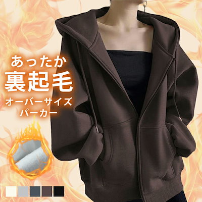 パーカー フード付き 裏起毛 スウェット 無地 オーバーサイズ カジュアル ゆったり 大人カジュアル 防寒 ジップアップ 長袖 秋冬 レディース トレンド プチプラ おすすめ