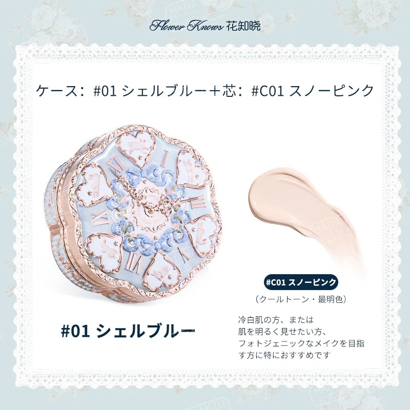 とにかくパケがめちゃくちゃ可愛いです♡♡クッション材なしで、商品のみ小さいダンボールに入れられて配達されましたが傷などはありませんでした。いちばん明るい色購入しましたが、いい意味で白!!って感じになりすぎなくて程よく明るくなってくれる感じでした。いい匂いします。