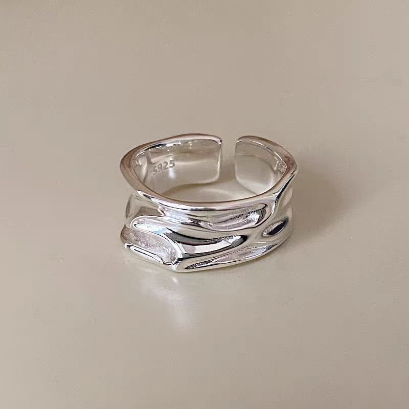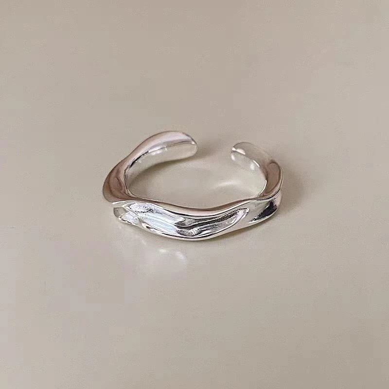 index2026新作 指輪 S925 純銀 イレギュラー オープン リング インデックス フィンガー リング ユニーク デザイン テクスチャー シワ リング レディース ハイクラス