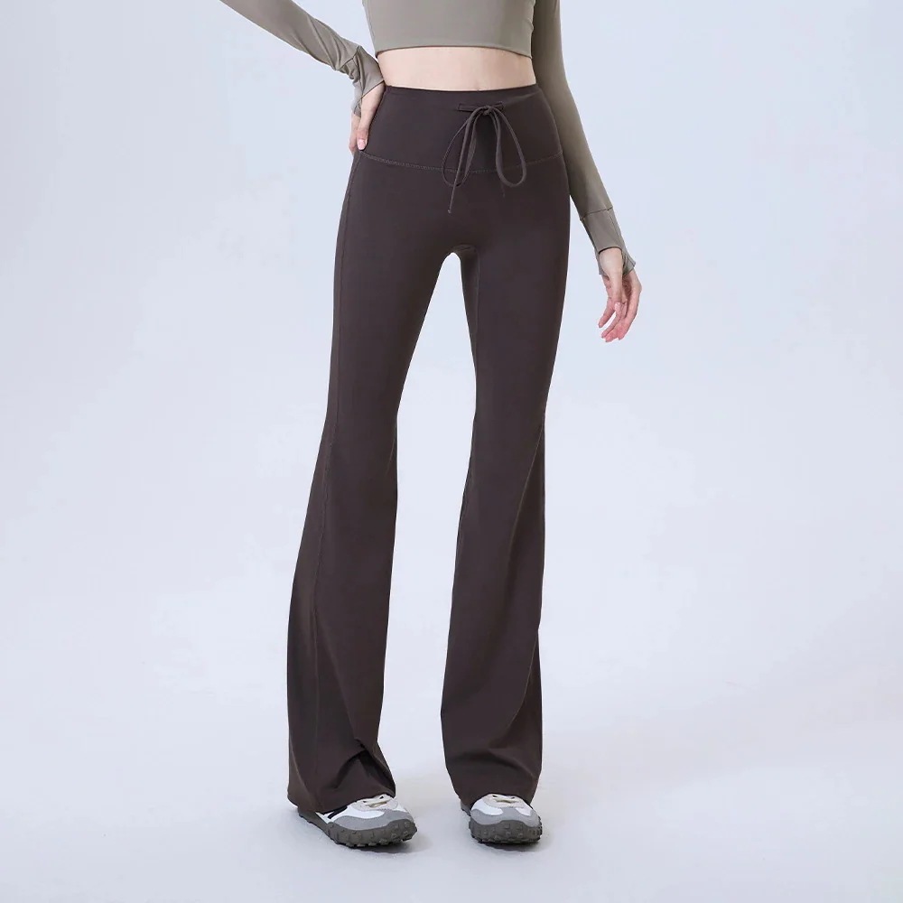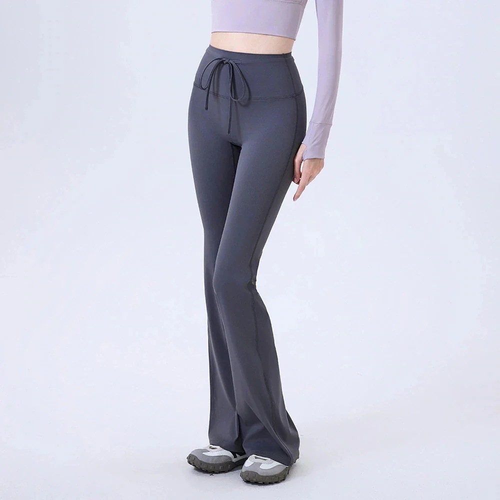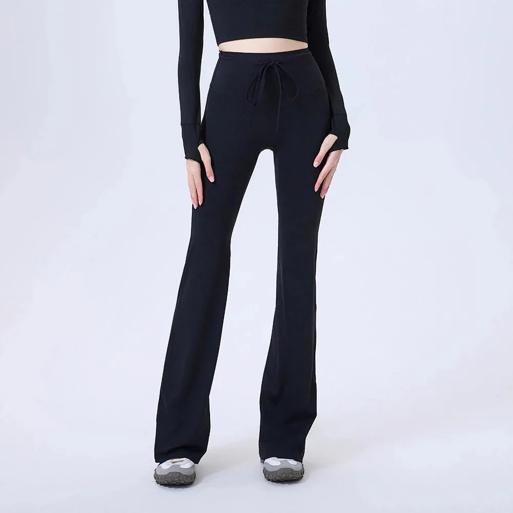ヨガパンツ ハイウエストウエストシェイプスポーツフレアパンツシームレスドローストリングロングパンツフィットネスパンツヨガパンツ