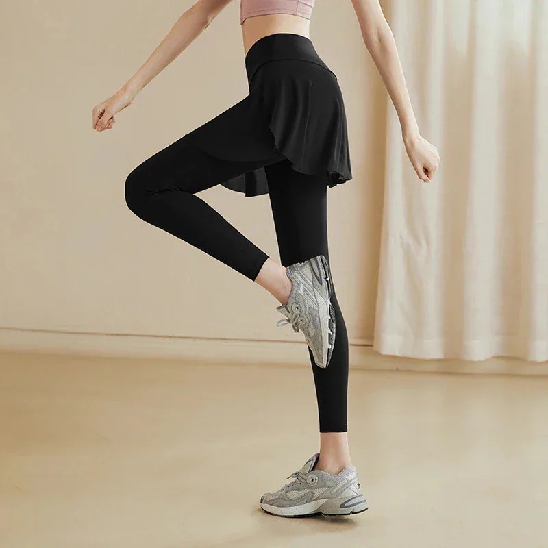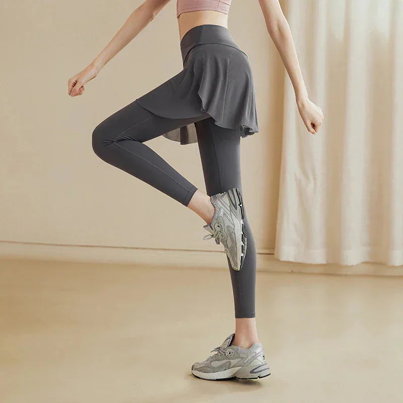 ヨガパンツ フェイクツーピースヨガパンツ女性用ハイウエストヒップアップスポーツランニングタイツダンススカート防漏光フィットネスパンツ