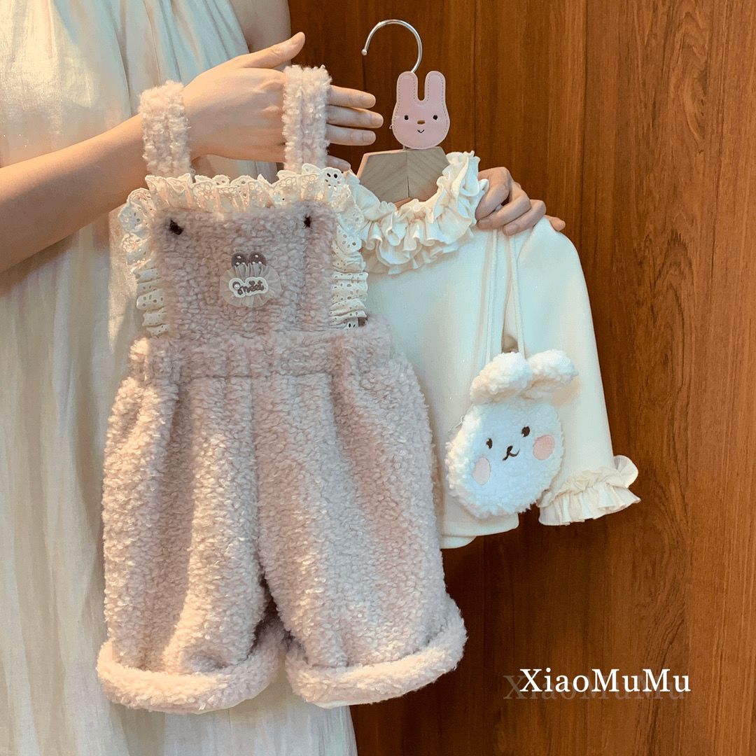 【本日限定】女の子秋冬セット2026新作インナーシャツ+毛糸サスペンダーパンツ2点セット