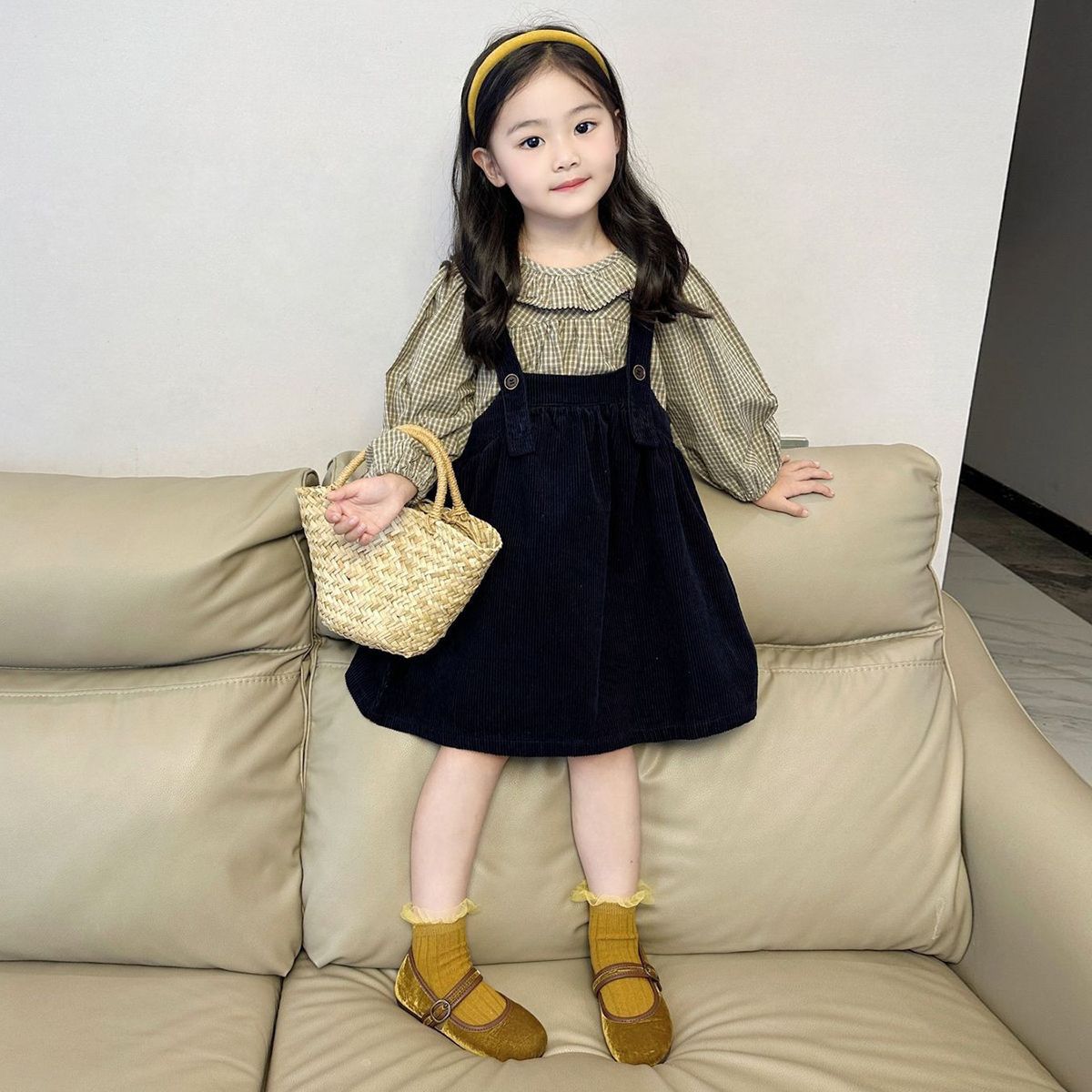 【本日限定】女の子用サスペンダースカートセット2026子供用チェックシャツ新作秋用シャツベビー2点セット