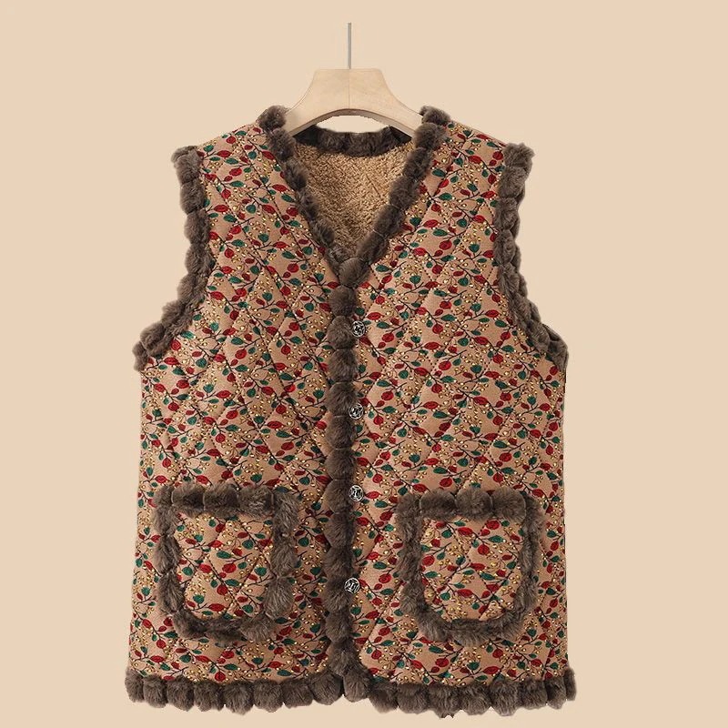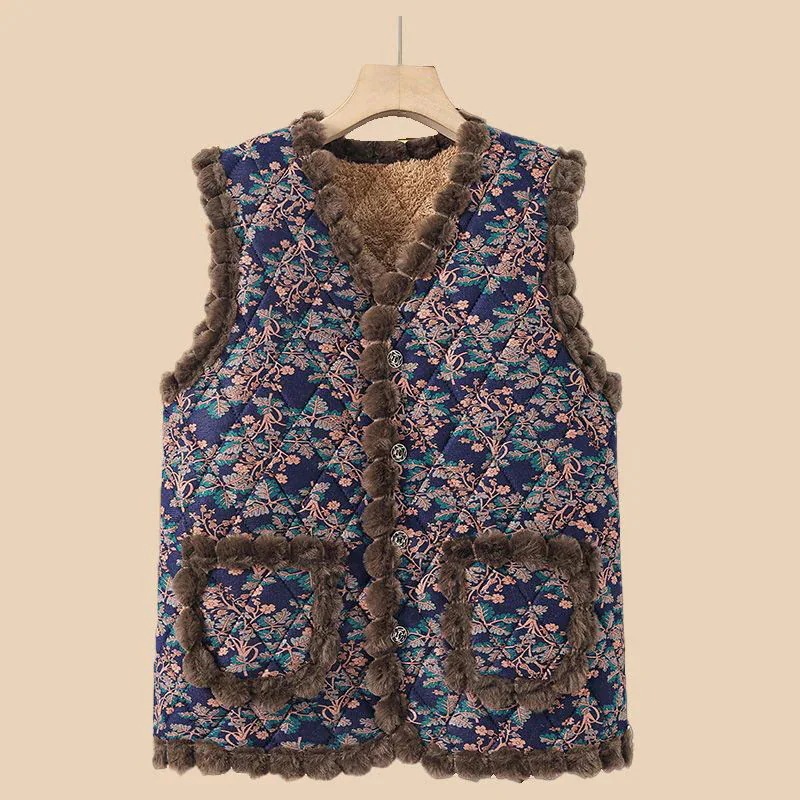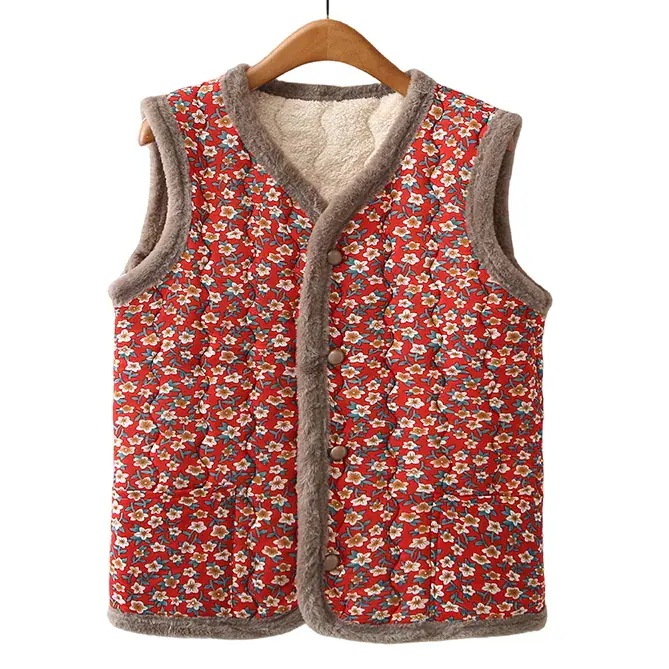 ハルモニチョッキ おばあちゃんチョッキ おばあちゃん ベスト 韓国 裏起毛 キルト キルティング プレゼント 花柄 秋冬 レディース ハルモニベスト ハルモニ あたたかい 暖かい 温かい