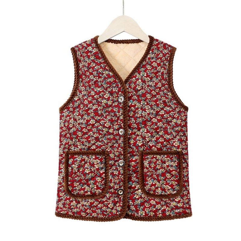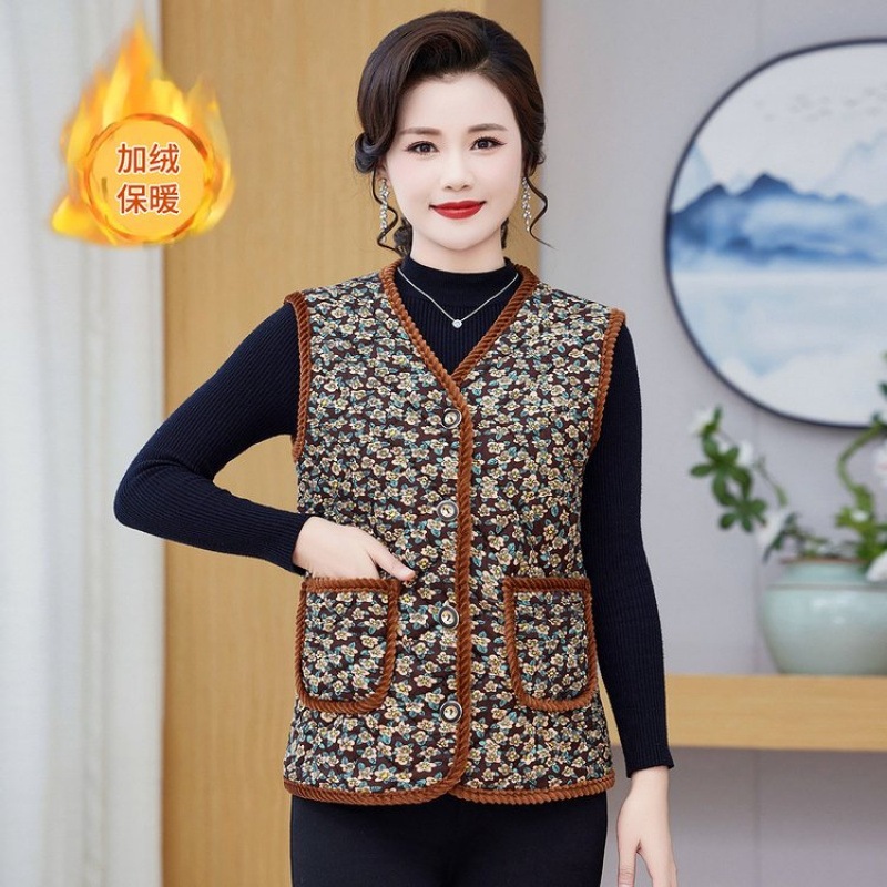 ハルモニチョッキ おばあちゃんチョッキ おばあちゃん ベスト 韓国 裏起毛 キルト キルティング プレゼント 花柄 秋冬 レディース ハルモニベスト ハルモニ あたたかい 暖かい 温かい