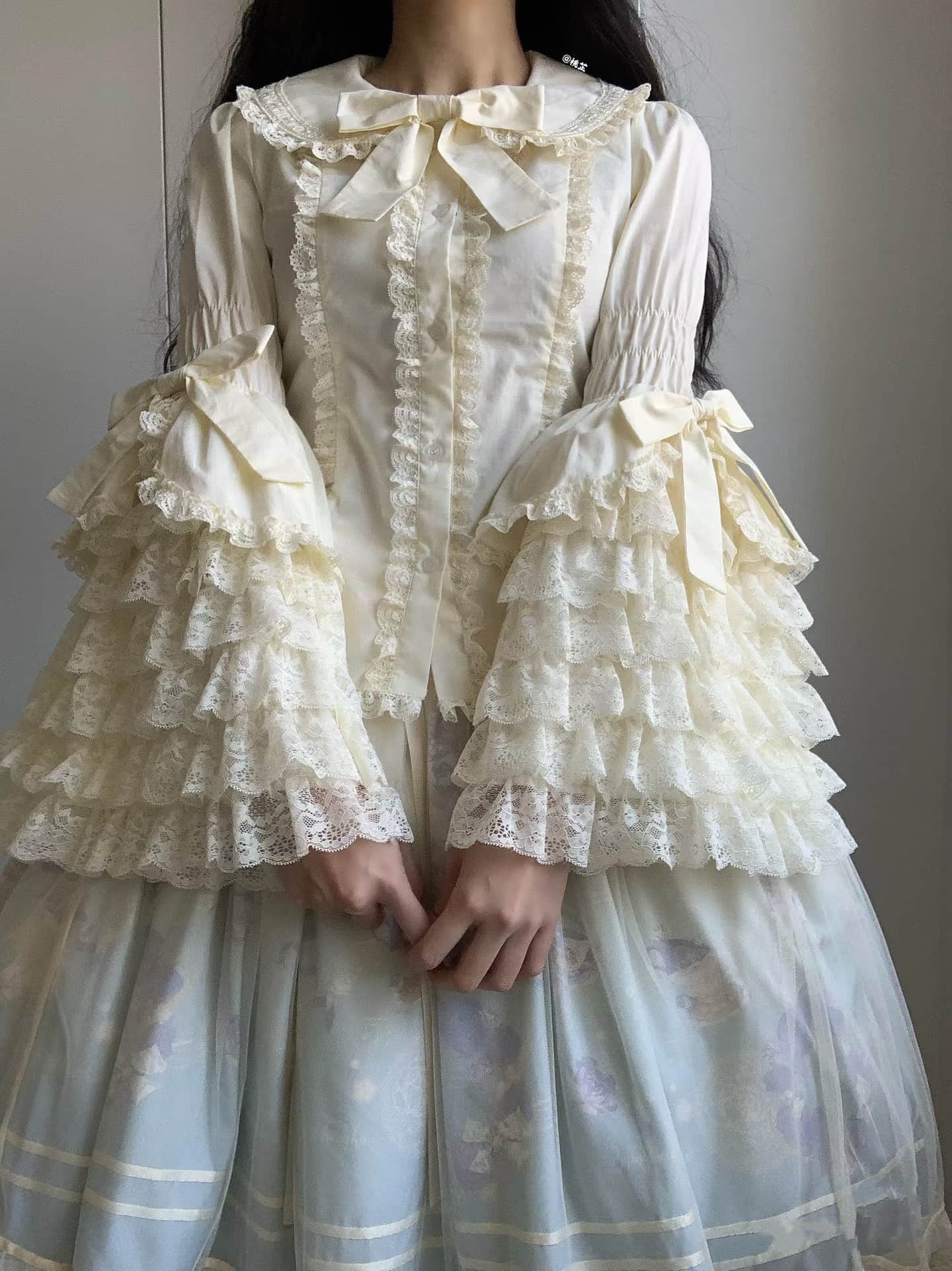 Lolita春夏モデル姫袖中にロリータ可愛いレースラッパ袖シャツを掛けます