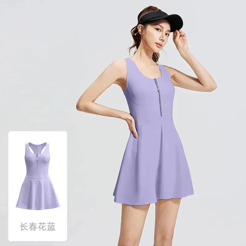 2026おしゃれヨガウェア ファスナーワンピース底付きアウトドアランニングフィットネスワンピース