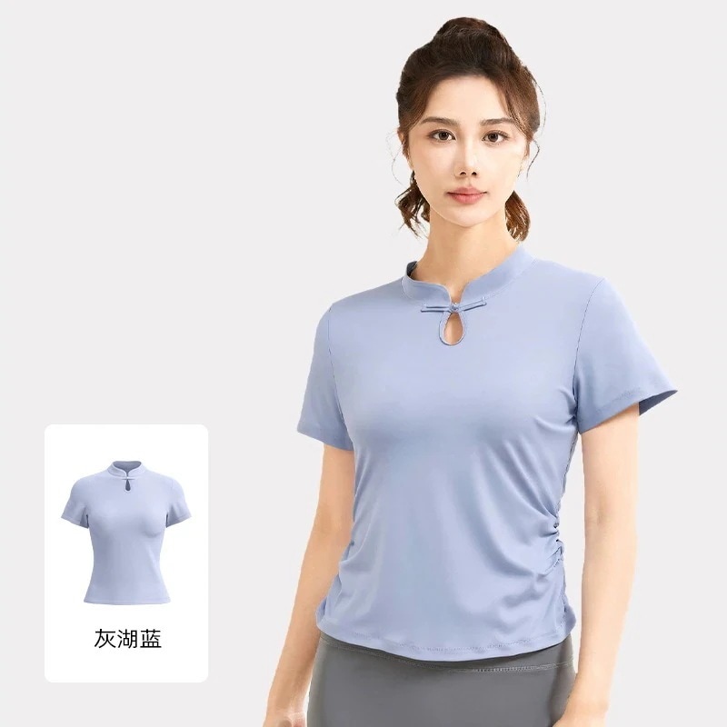 2026新作おしゃれヨガウェア トップス ヨガ半袖女性用バックルジャージサマーおしゃれヨガウェア