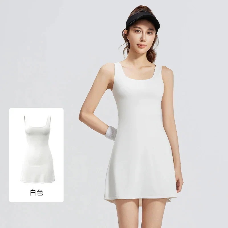 2026新作連体スポーツテニススカート女性用胸当て付き光防止美背中ヨガワンピース おしゃれヨガウェア