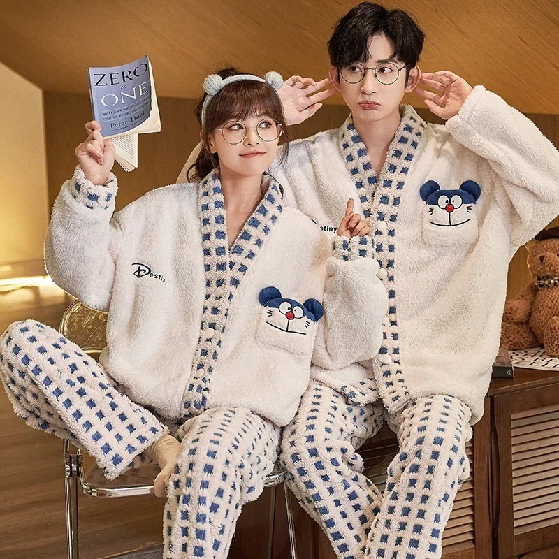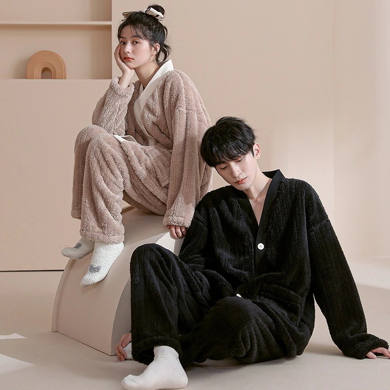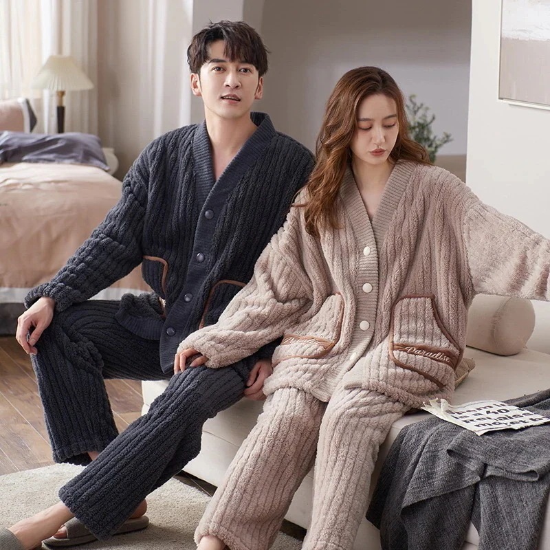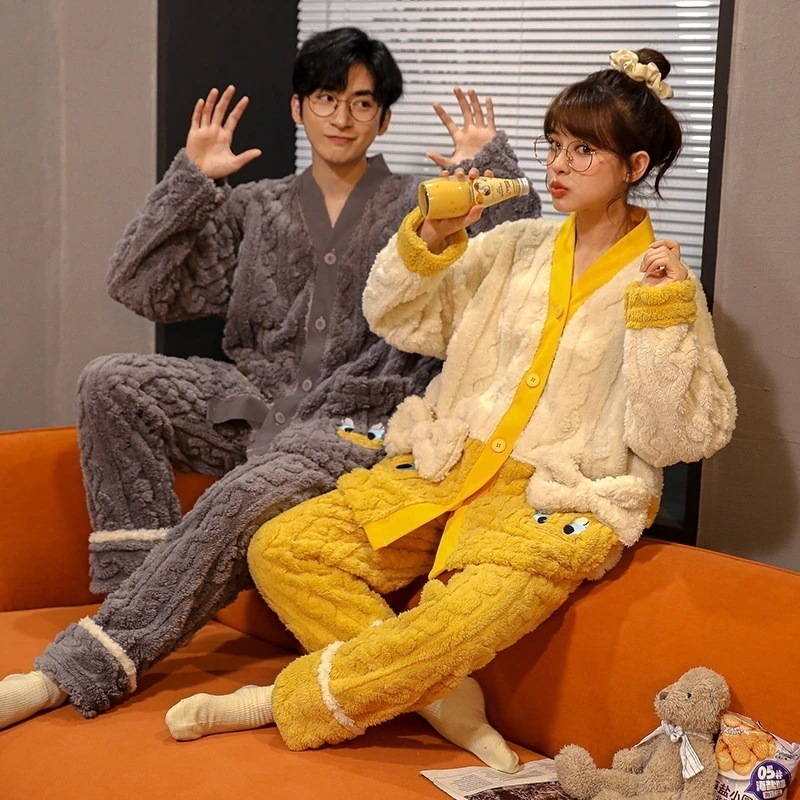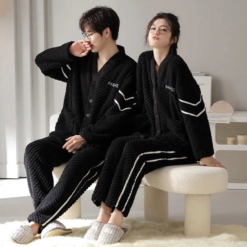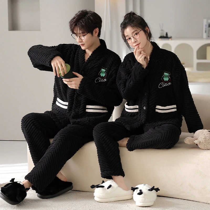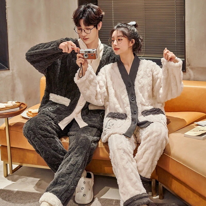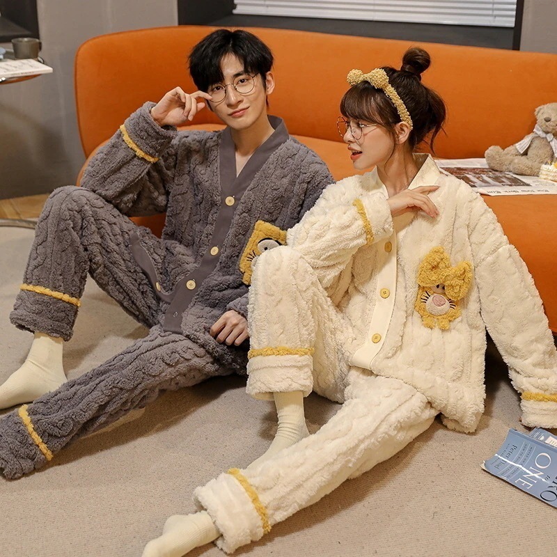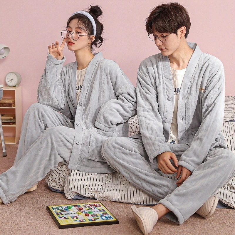 カップル 可愛い 柔らかい おしゃれ スイート ウォーム コーラルフリース パジャマ カジュアル フランネル ゆったり ホームウェア