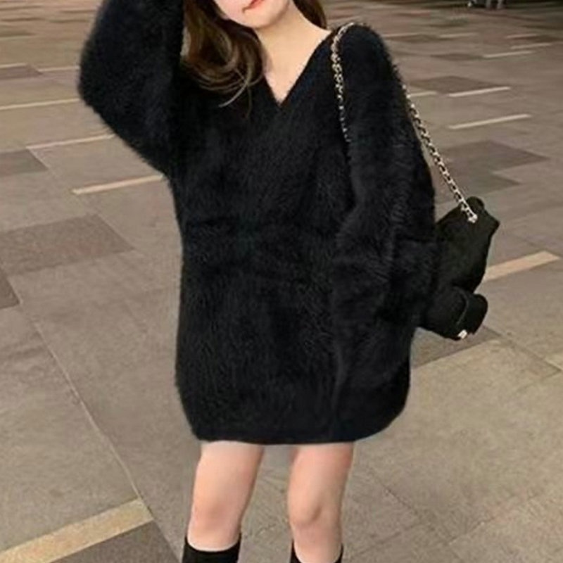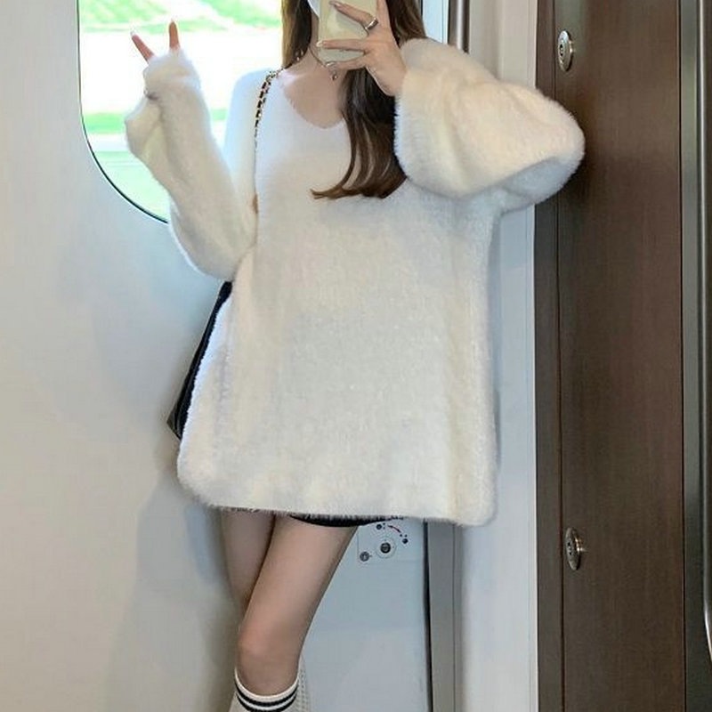 SMFashion【肌触り最高】オフショルダー ニット レディース 長袖 もちもち ふわふわ ロング丈 ルーズ カジュアル トップス