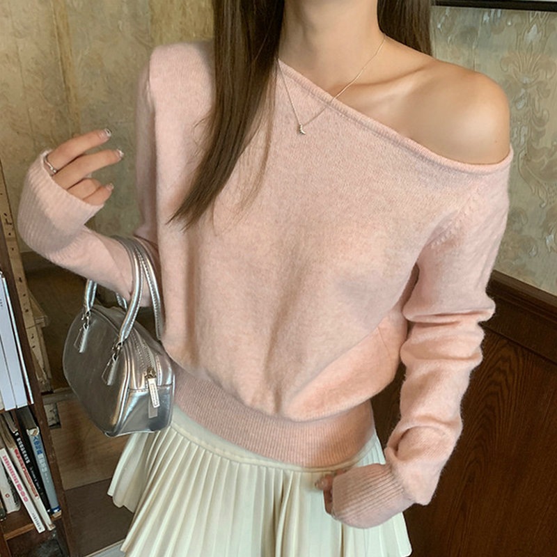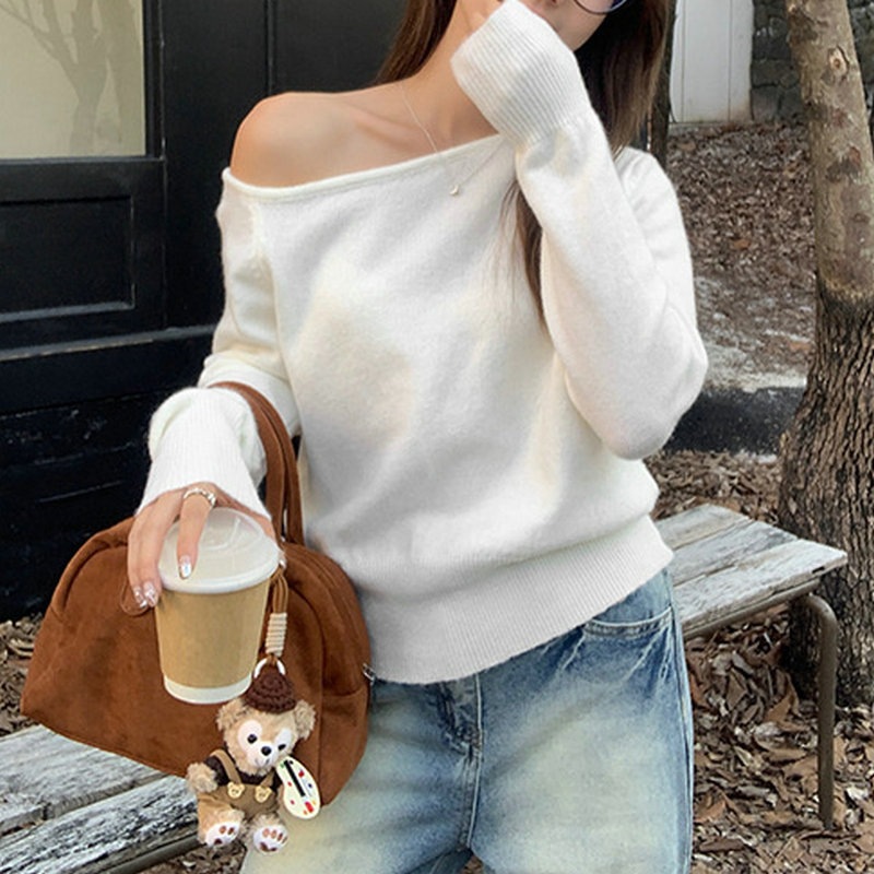 SMFashion超人気商品推薦 アシンメトリー ニット レディース ワンショルダー 長袖 スリム シック オフショルダー マルチコーデ トップス 肩出しニット