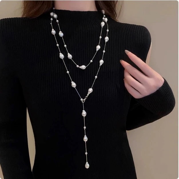 パール ネックレス 毛糸の鎖 鎖骨チェーン 気質 ファッション ネックチェーン