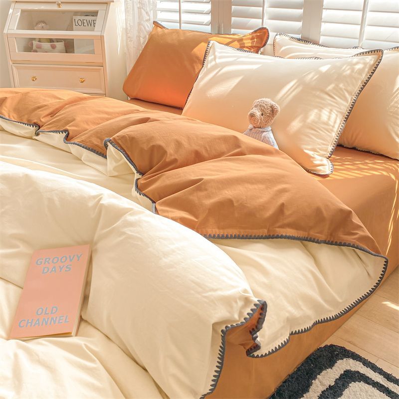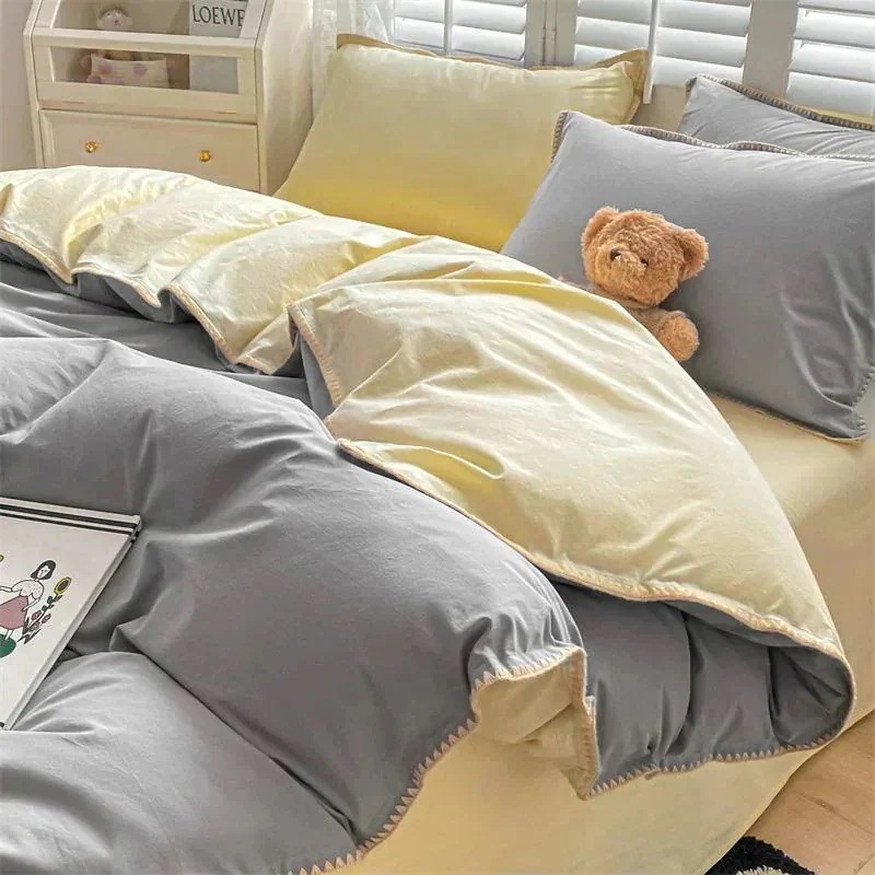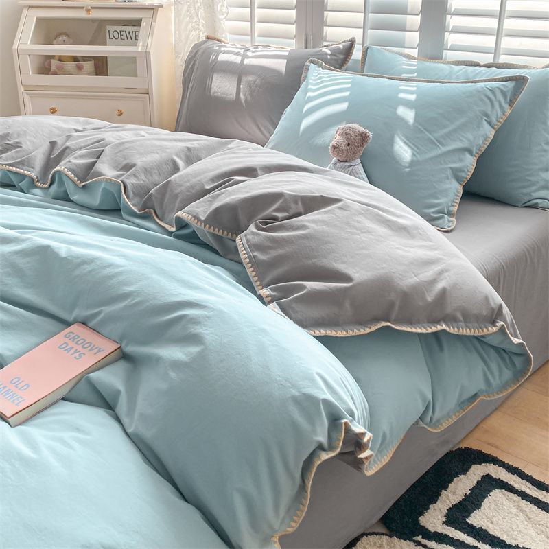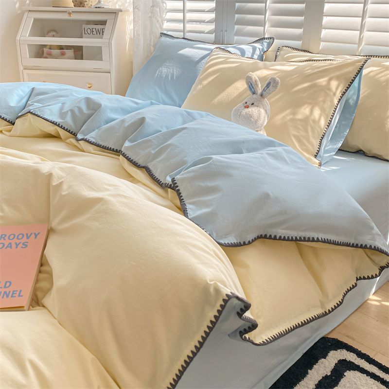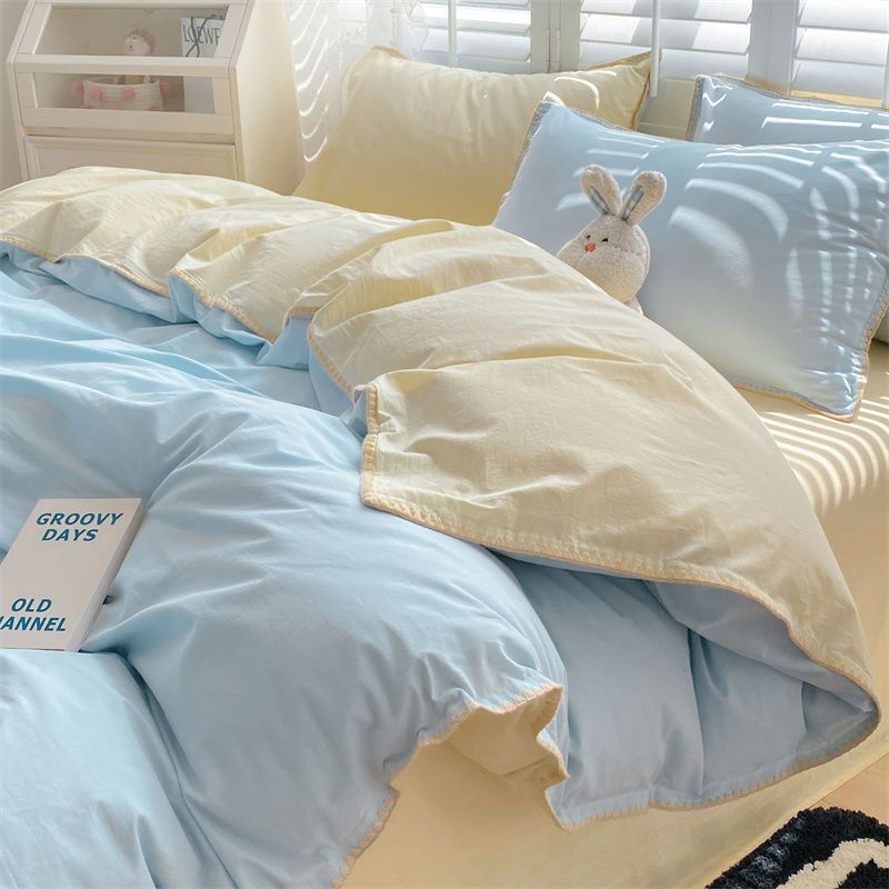 布団カバー 掛け布団カバー ベッドカバー ベッドシーツ掛け布団カバー3点セット ベッドシーツ掛け布団セットカバー帽子モデル ドミトリーベッド 4点セット シンプルスタイル 四 ユニバー