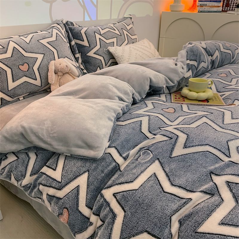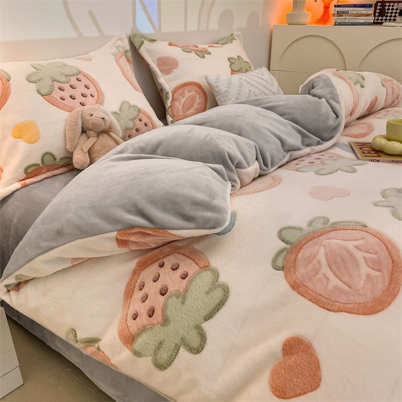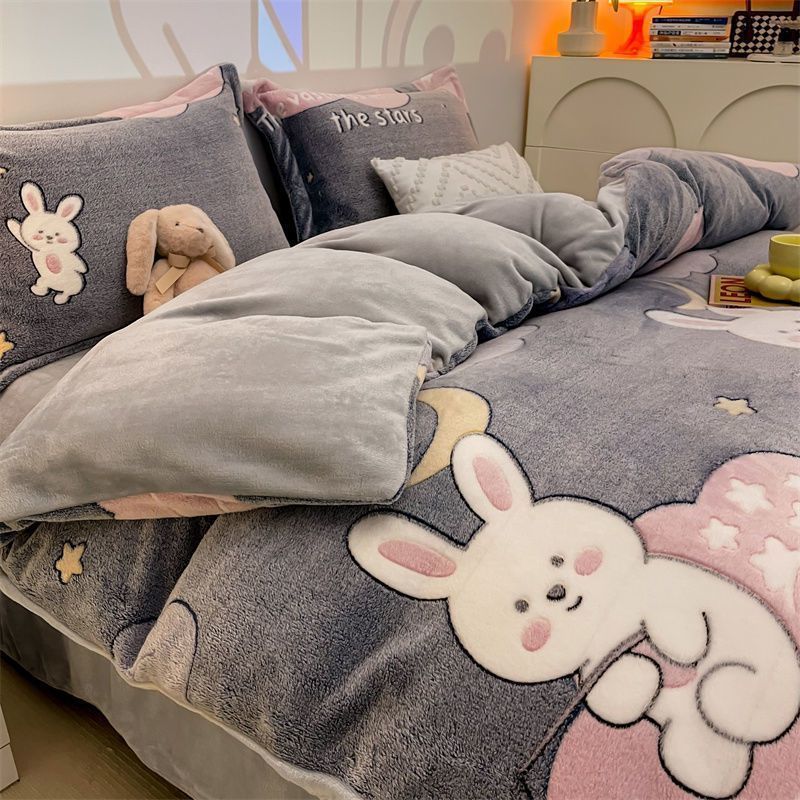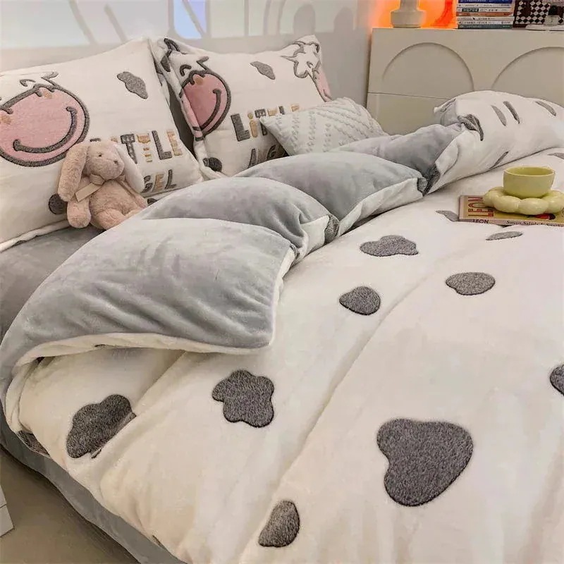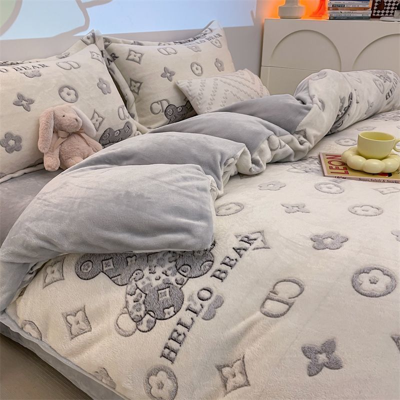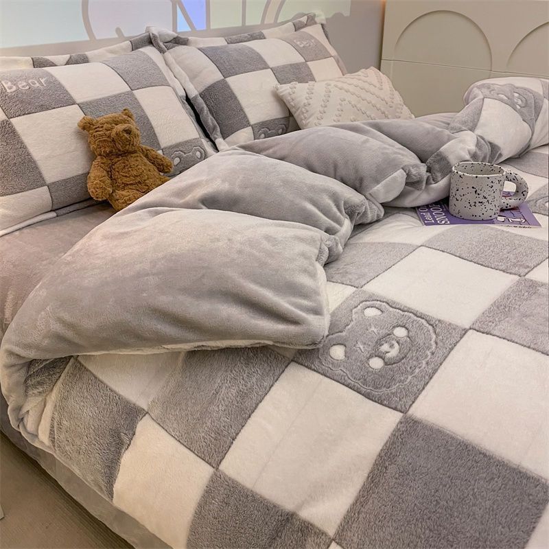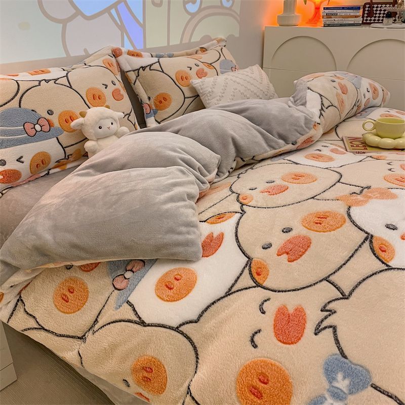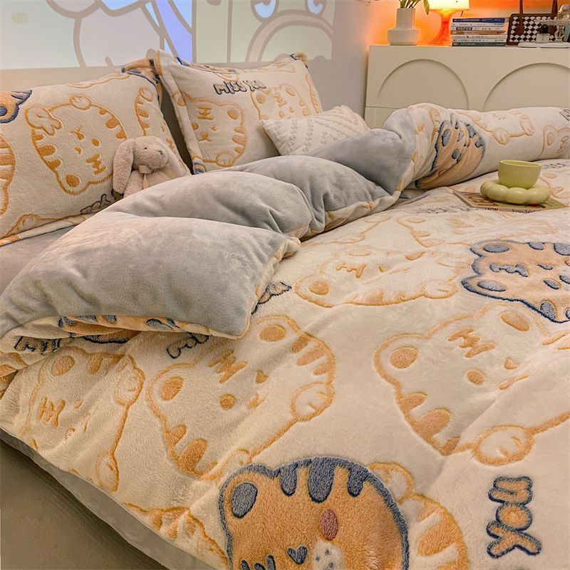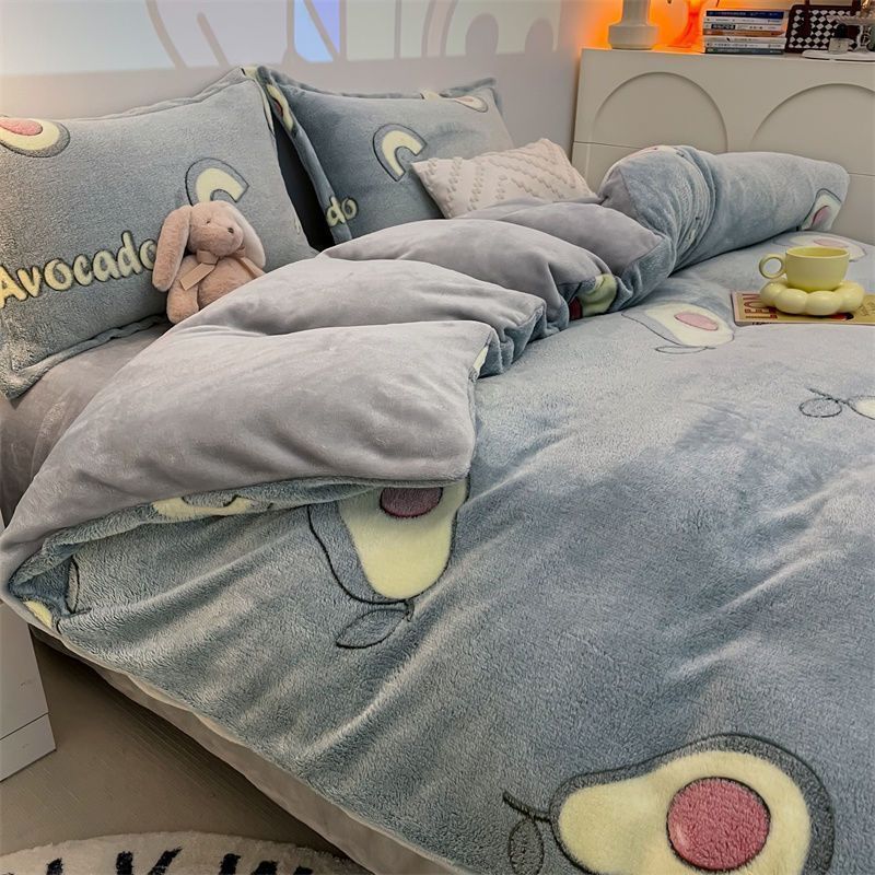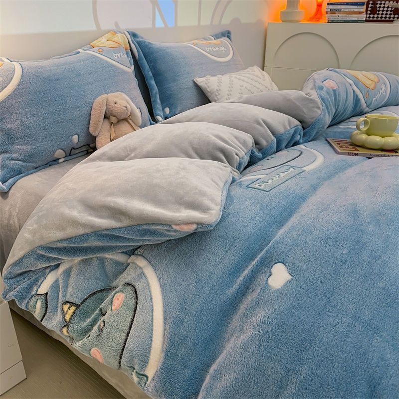 布団カバー 掛け布団カバー ベッドカバー ミルクベルベット寝具4点セット 用厚手サンゴベルベット布団カバー両面パッド入りフランネルシーツ3点セット