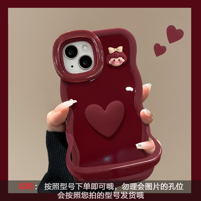 ハートガールぬいぐるみ付きiPhone17 Pro Maxケース iPhone15用デュアルスタンド16リボン14女性向けiPhone 17 Pro Max