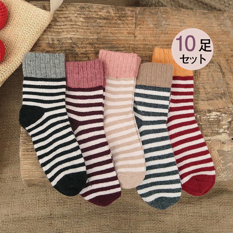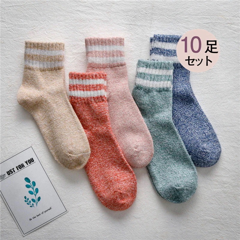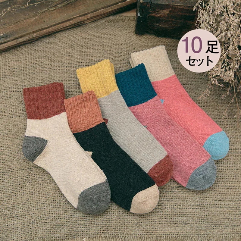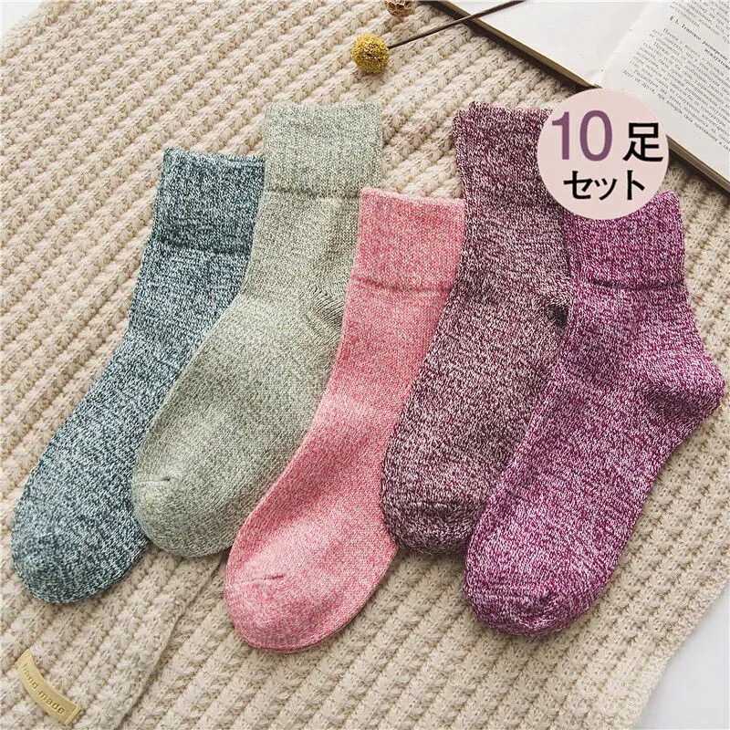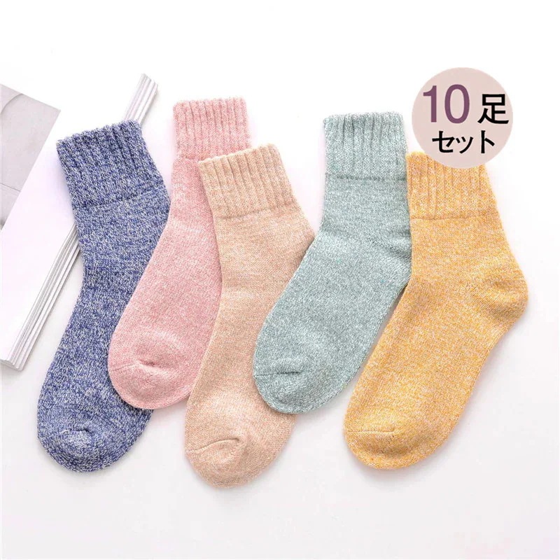 靴下 ソックス 暖かい レディース 防寒靴下 10足セット 温もり 暖 保温 保湿 冷えとり 上の履き心地 無地 シンプル おしゃれ 汗吸収