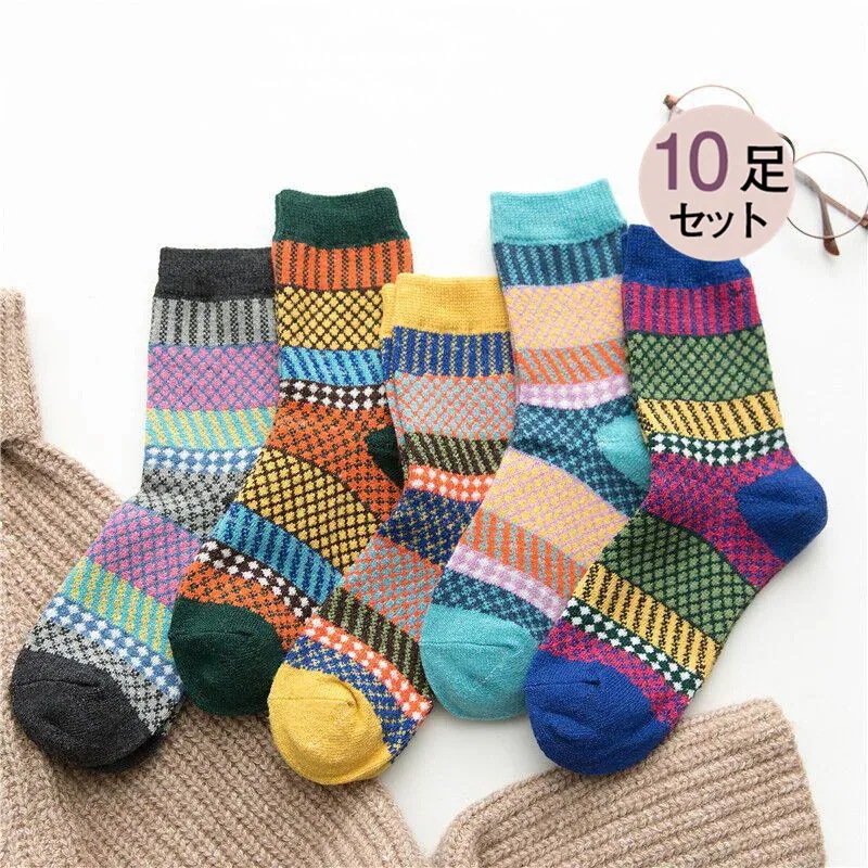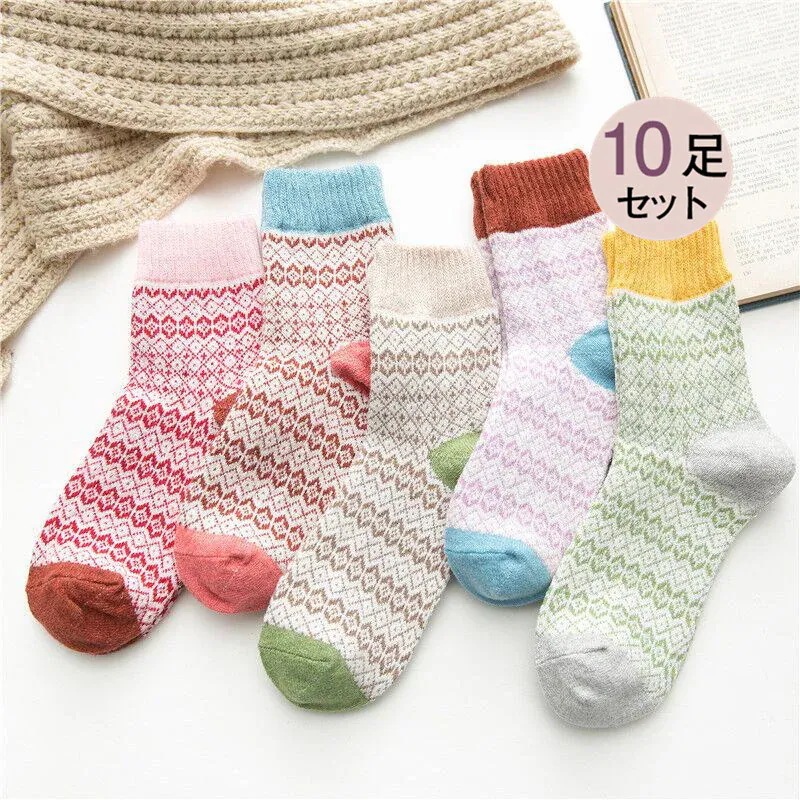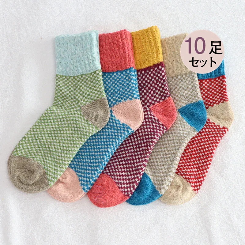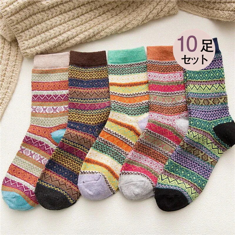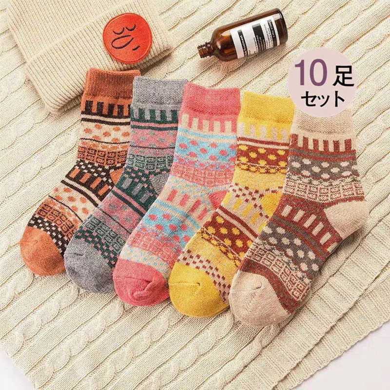 靴下 ソックス 暖かい レディース 防寒靴下 10足セット 温もり 暖 保温 保湿 冷えとり 上の履き心地 無地 シンプル おしゃれ 汗吸収