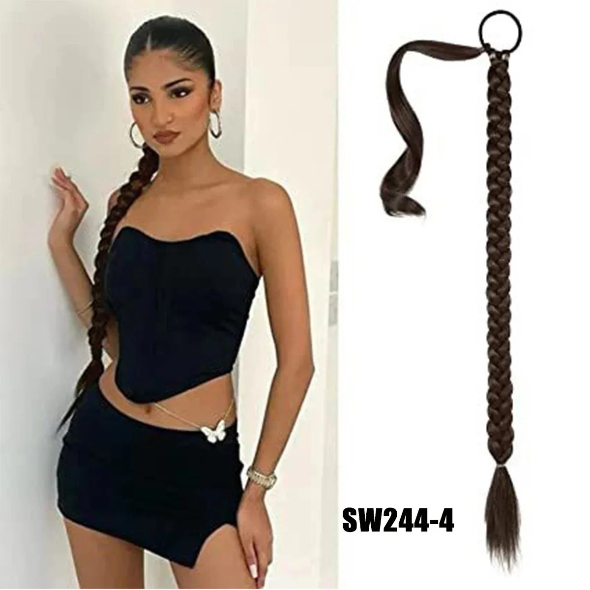 フェイク三つ編み 2022新作 おしゃれな化繊ウィッグ 女性用ロング三つ編み ヘアエクステ ヘアバンド 三つ編み ウィッグ ポニーテール