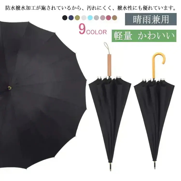 大人気 傘 16本骨 おしゃれ 長傘 かさ 雨傘 9色 風に強い 撥水 晴雨兼用 天然木の持ち手 丈夫 大きめ ジャンプ傘 おしゃれ 耐風 大人 可愛い シンプル 頑丈 無地 ワンタッチ プレゼント