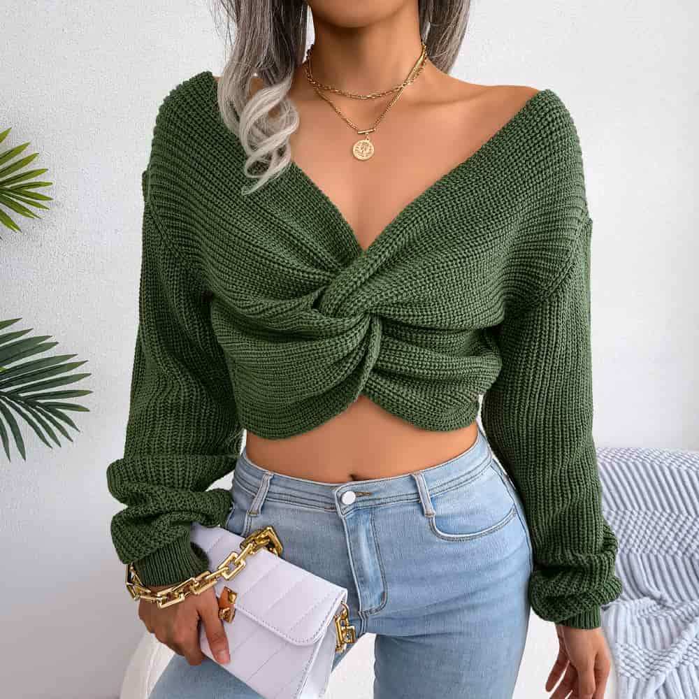 [2026設計新規出荷が早い]セーター レディース クロス 結びデザイン ウエスト出し セクシー Vネック トップス 長袖 リブ ニット おしゃれ きれいとても良い