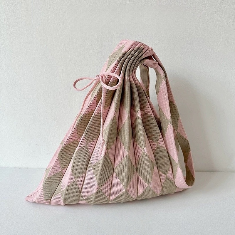 ニットトートバッグ プリーツ 大きめ トートバッグ レディース ニットバッグ 推し活 バッグ 大人 トートバッグ ミニトート バッグ かばん 鞄 エコバック ミニバック トート サブバッグ おしゃれ