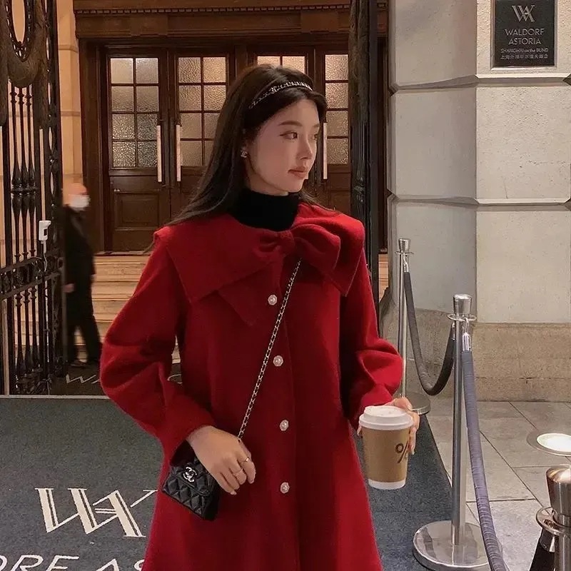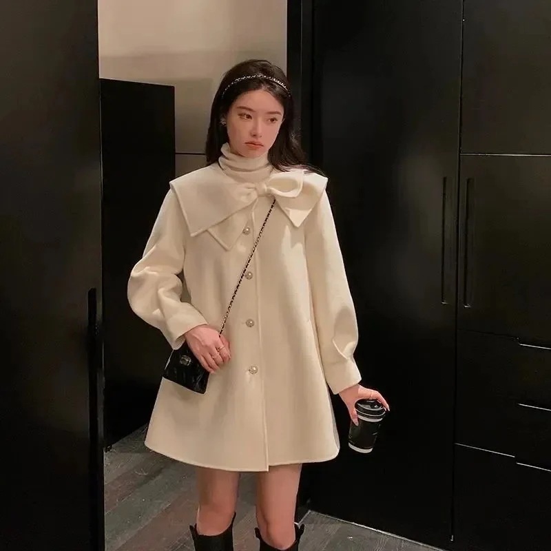 ウールコート女性2026年早春新作 デザイン性のあるゆったり厚手ウールコート
