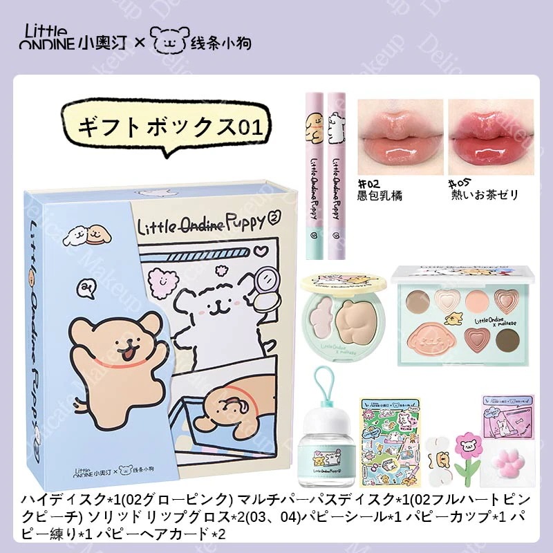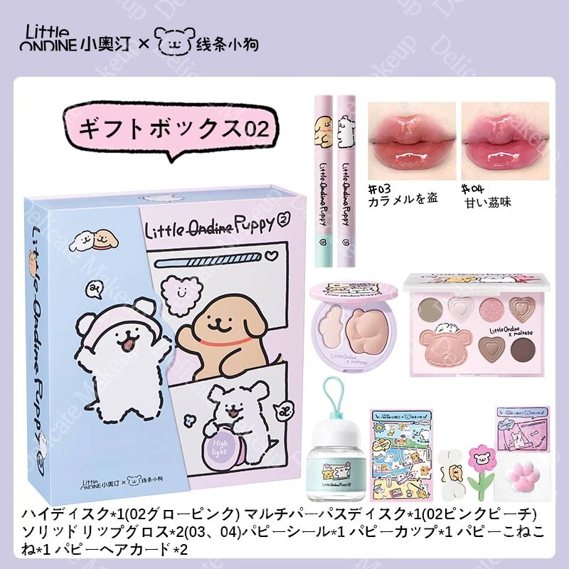 リトルオンディーヌ【新作登場】小犬のお土産セット コスメセット コスメ福袋 プレゼント 7色アイシャドウ ライン子犬連名 超かわいい 総合盤 アースカラー ハイライト ギフト マットハイライター 記念日プレゼント