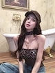 スパンコール ビスチェ ベアトップ レディース トップス インナー チューブトップ 異素材 切り替え ギャル セクシー キラキラ 派手 ダンス 衣装 イベント クラブ 韓国 ファッション ブラウン