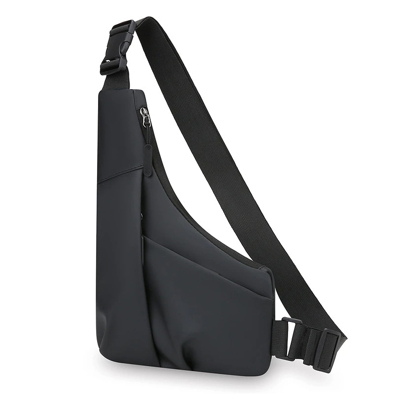 メンズポータブルチェストバッグアウトドアスポーツ用ショルダーバッグ個性的な不規則デザイン薄型軽量ショルダーバッグ体にフィットする三角バッグ