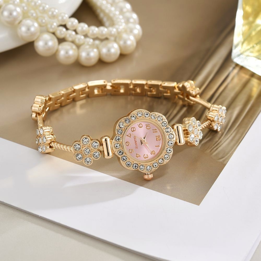 【3日出荷】腕時計 レディース ステンレスバンド フルダイヤ ひまわり文字盤 細バンド 高級感 デジタル