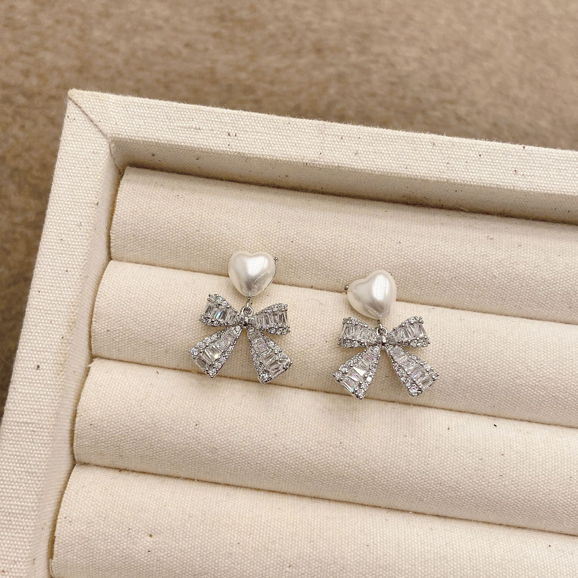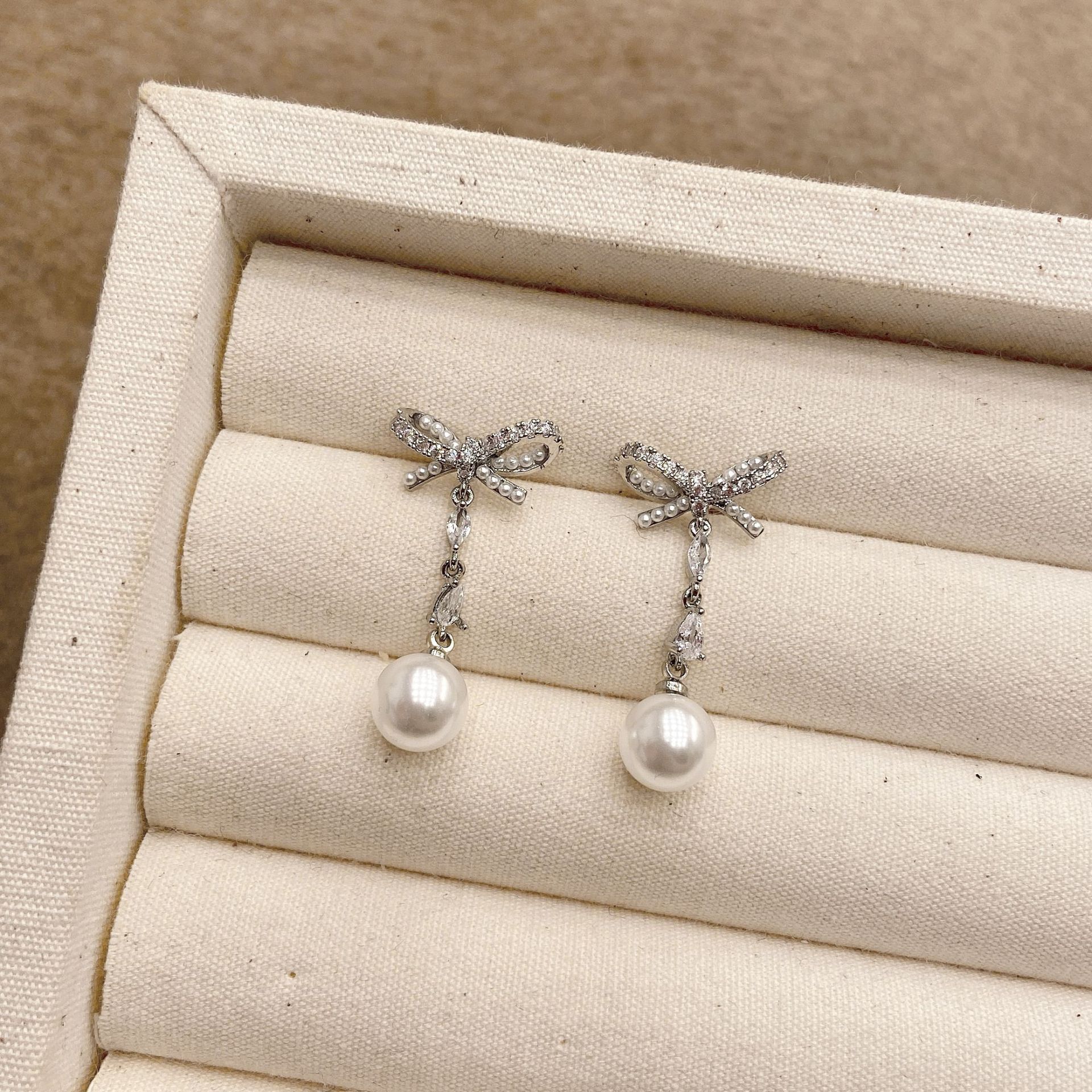 新作上品ラグジュアリー米粒パールリボンペンダントピアス 繊細シンプルニッチデザイン万能女性用イヤリング
